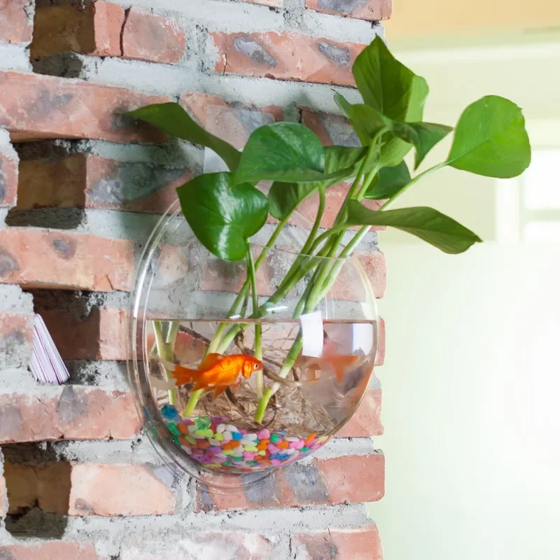 Стена рыбы пузырь стены подвесная миска прозрачная акриловая ваза цветок растения горшок аквариум