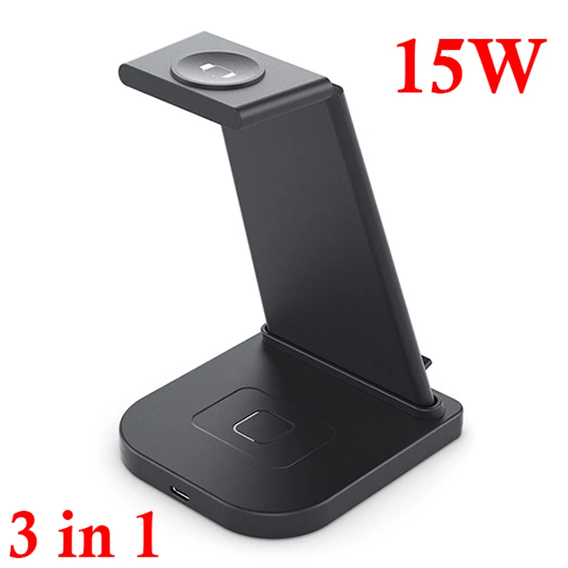 15 Вт Qi Беспроводное зарядное устройство Подставка 3 в 1 для IPhone AirPods Pro Watch Samsung S20/10