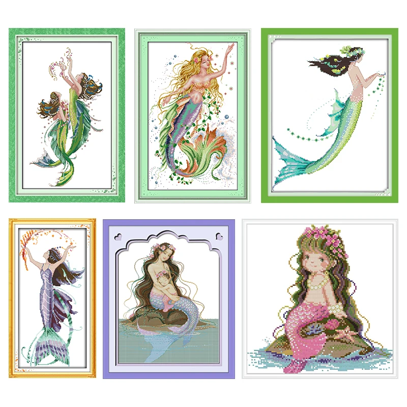 Наборы для вышивки крестиком «Русалочка», штампованные узоры, 11CT 14CT, рукоделие ручной работы, вышивка, Декор, художественное Шитье