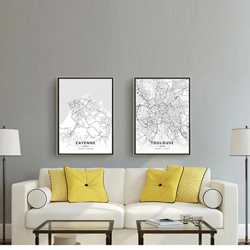 Картахена, черно-белая карта, плакат, художественные рисунки, домаш...