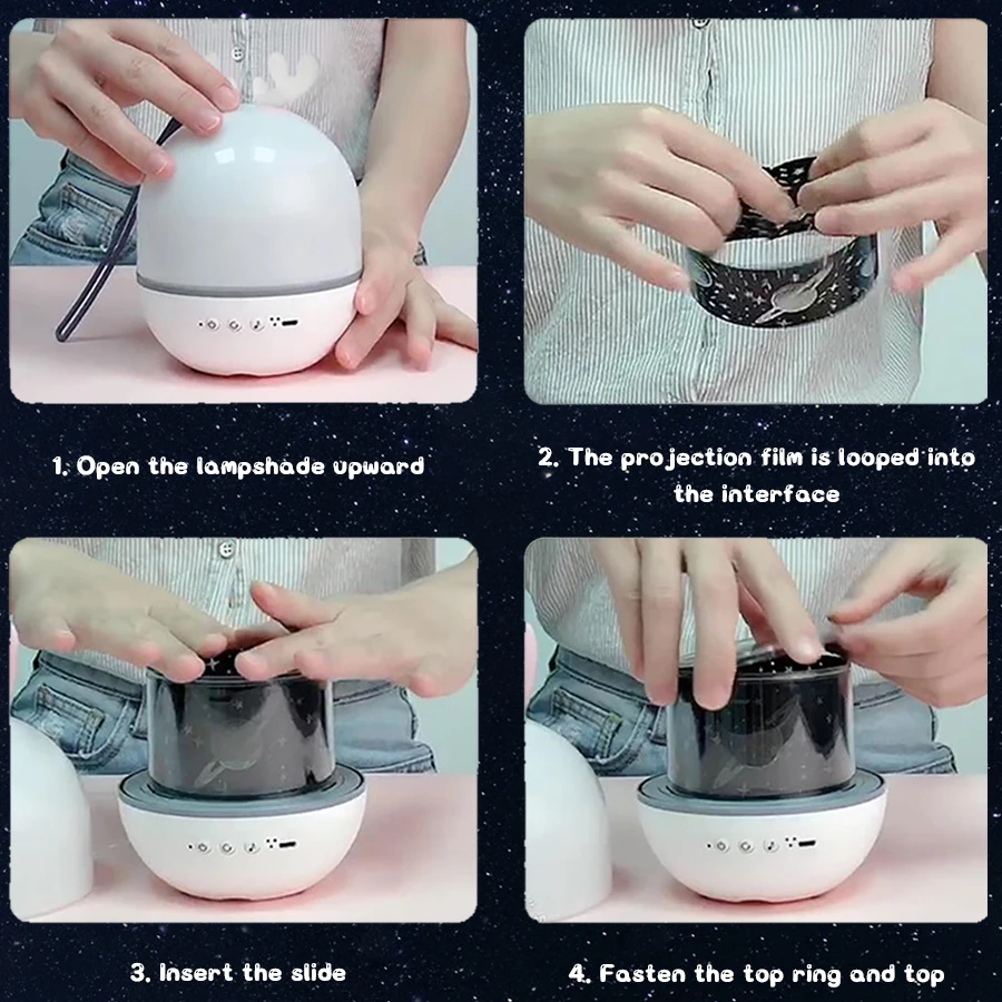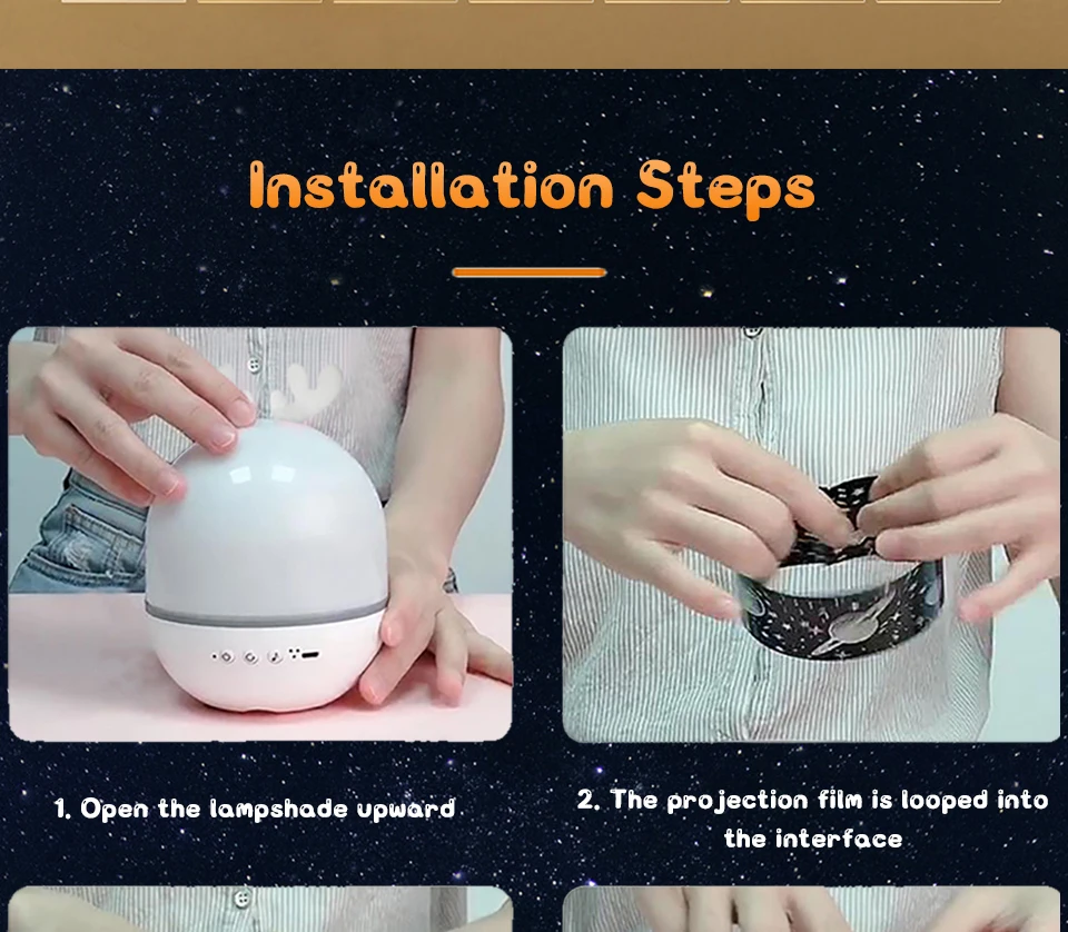 1. "Кнопка питания (кнопка светильник)" Функция:Удерживайте кнопку «power button» в течение 2 секунд, чтобы включить/выключить светодиодный светильник.Светильник ly нажмите «кнопку питания», чтобы переключить режим светильник (белый/желтый/синий/цветной градиент/режим дыхания),2. Функция "Кнопка вращения":Слегка нажмите кнопку «вращение», чтобы включить/выключить вращение двигателя, нажмите кнопку «вращение» на время, время составляет 30 минут, И он автоматически отключится через 30 минут.3. Функция "музыкальная кнопка":Нажмите кнопку «Музыка», чтобы включить/выключить музыкальную коробку (Bluetooth), слегка нажмите кнопку «Музыка», чтобы перейти к следующей песне.