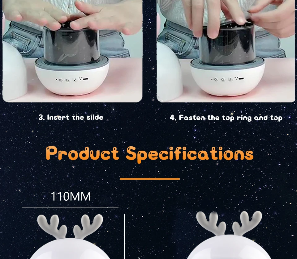 Как верно все пишут- доставка супер быстрая! Спасибо! Ночник чудесный, дочка в восторге! Можно менять и цвет, и мелодии и заряжать от сети. У нас в комплекте ещё шли заячьи ушки помимо лосиных. Очень мило!