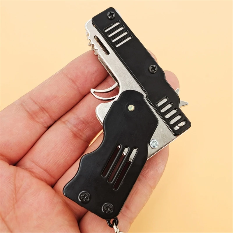 Цветной металлический мини-пистолет из цинкового сплава, можно сложить в качестве кольца для ключей, Детская Подарочная игрушка, шесть вспышек резинового Игрушечного Пистолета