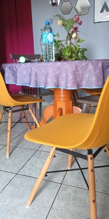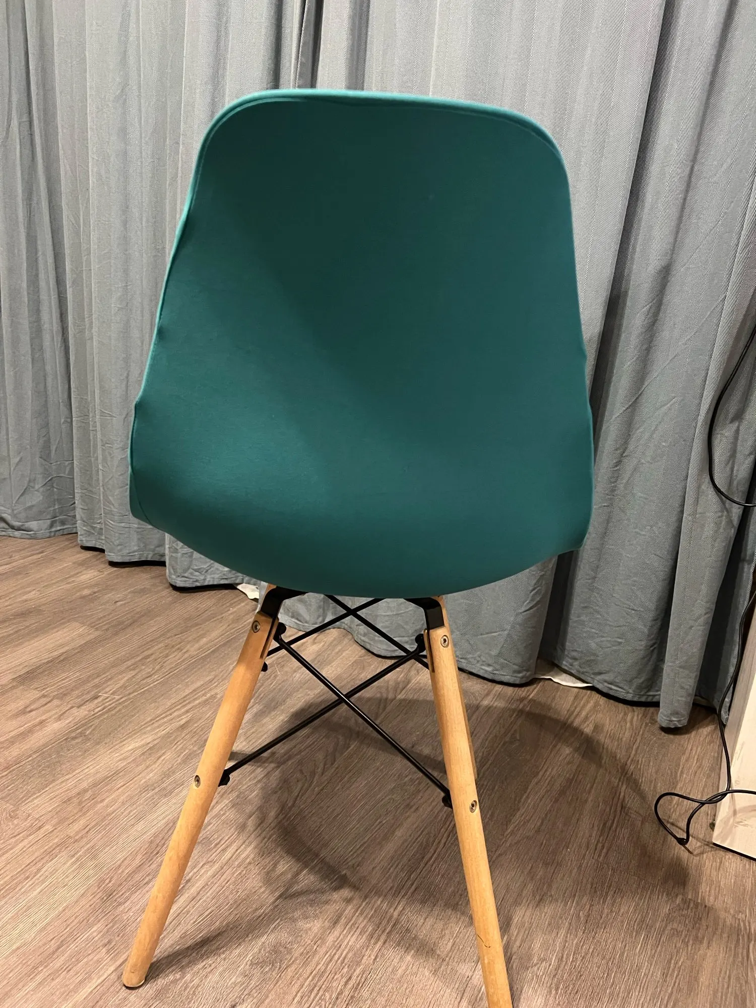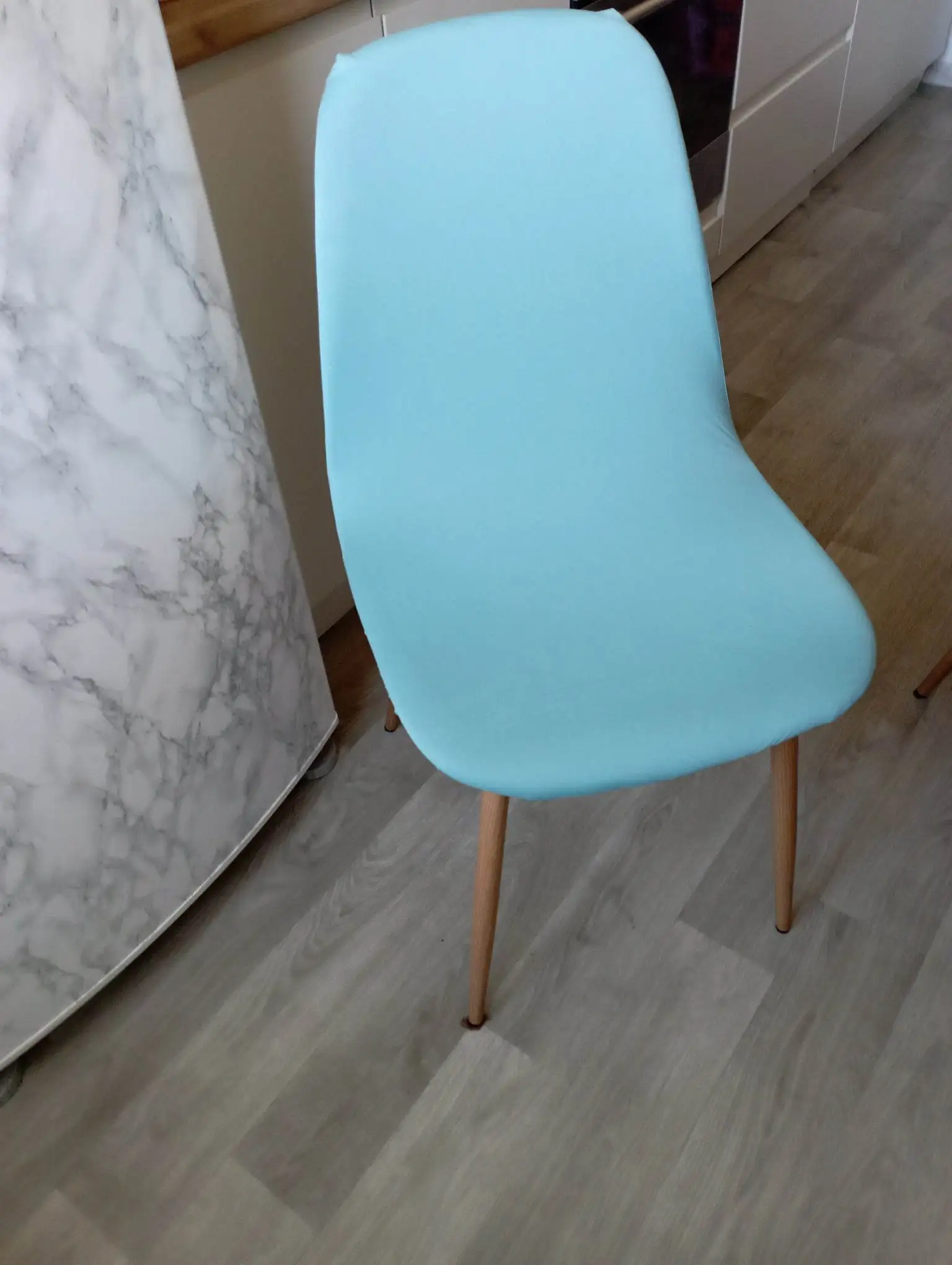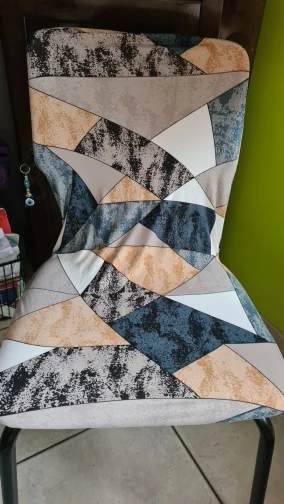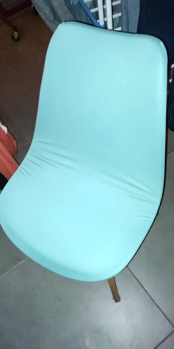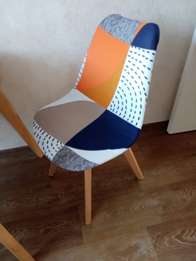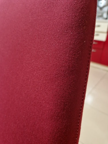 Цвет немного не такой яркий как на фото. Качество нормальное это эластан. Но на стуле выглядит не очень хорошо. Сиденья прошито не очень правильно, как я думаю. Из-за этого оно топорщится в разные стороны.