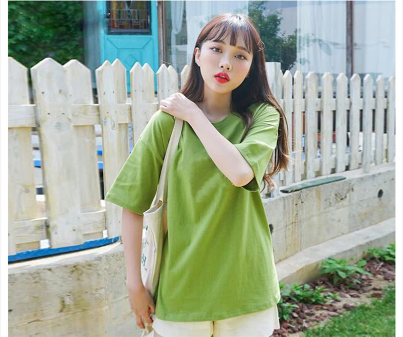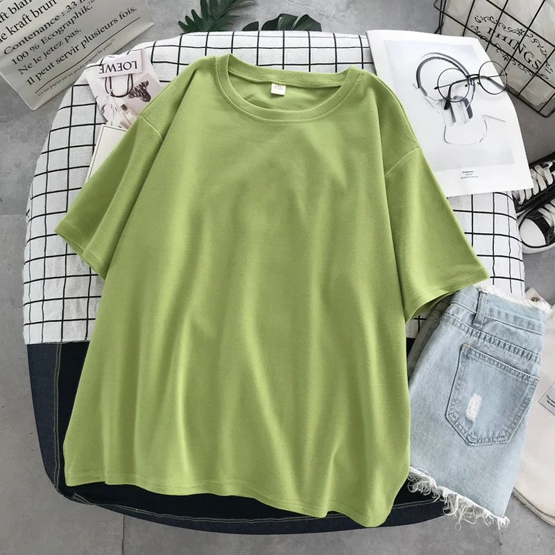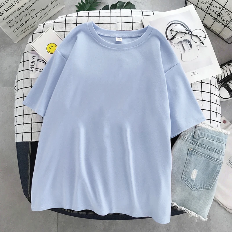 Футболка женская хлопковая однотонная, 7 цветов, с круглым вырезом
