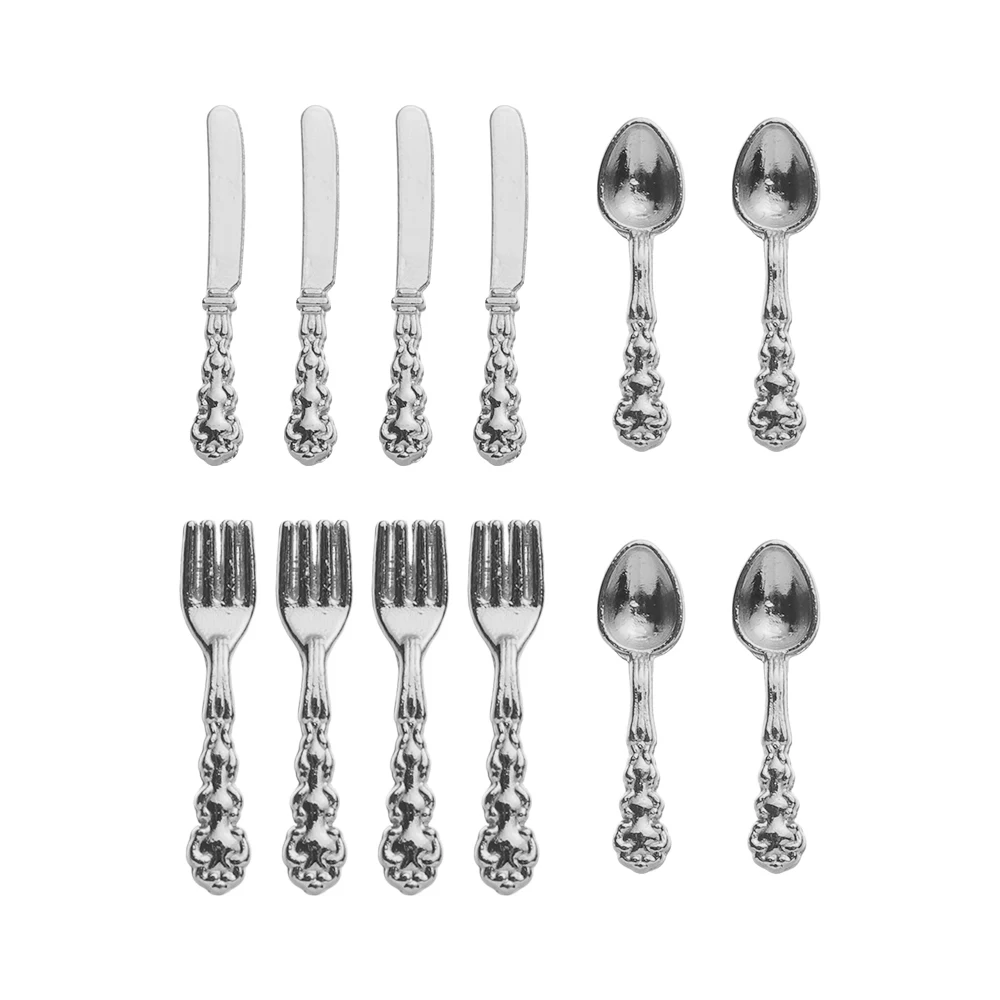 12 шт., игрушечный кукольный домик, мебель, золото, серебро, масштаб 1:12, имитация мини-столовых приборов, аксессуары для кукол, вилка, нож, ложка, миниатюрная посуда