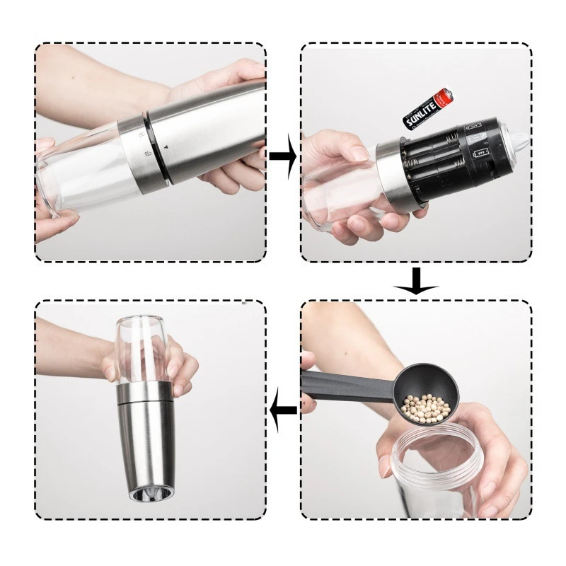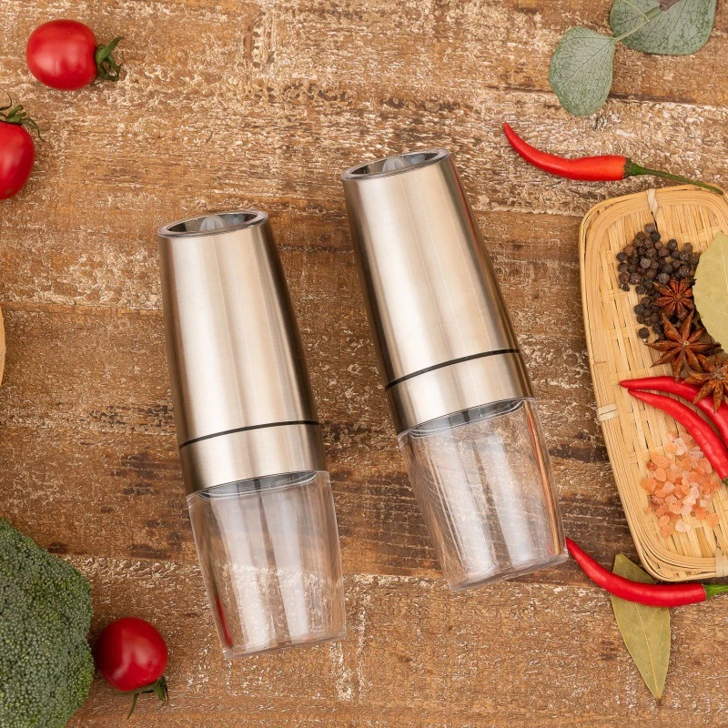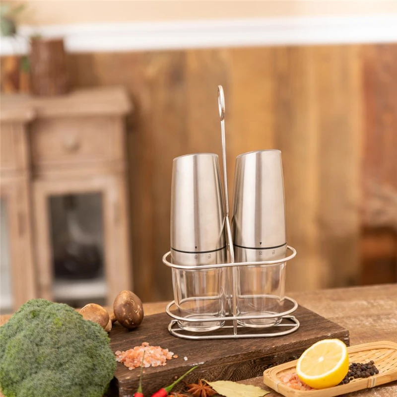 Электрическая мельница для перца с металлической подставкой, мельница для соли и перца, автоматический гравитационный индукционный для сезонных приправ, кухонные инструменты