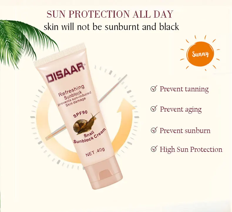 Солнцезащитный отбеливающий крем с экстрактом улитки, увлажняющий антивозрастной крем для лица и всего тела, SPF 90, 40 мл