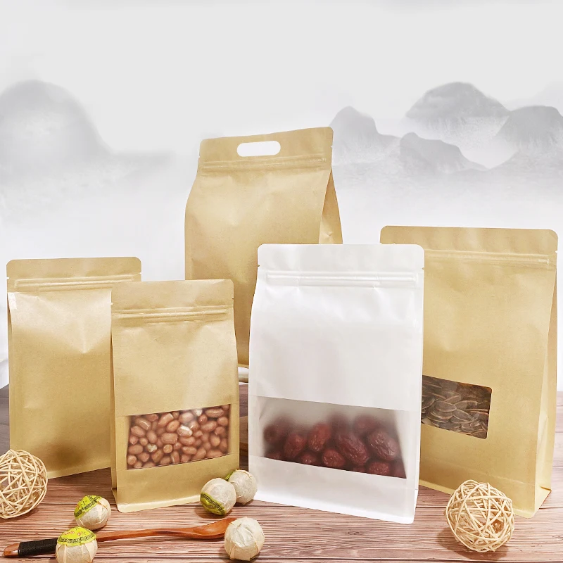 Название продукта: 50 шт. восьмисторонняя уплотнительная белая крафт-бумага переднее окно зерно цветок чай кофе еда замок-молния хранение универсальный пакет