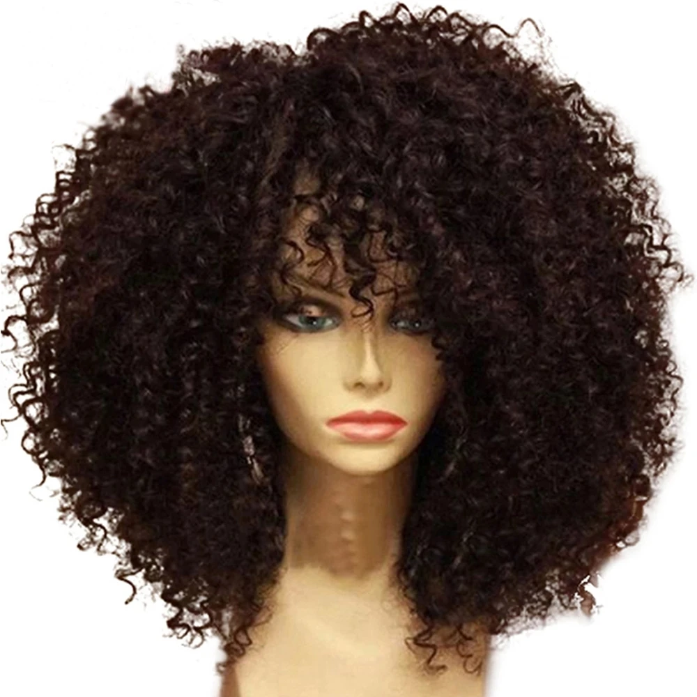 Афро кудрявые человеческие волосы парики с челкой полностью машинна...
