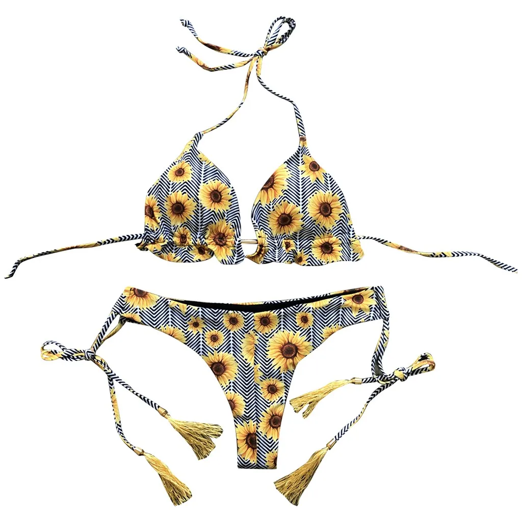 Модное бикини с принтом подсолнухов 2020 женский сексуальный комплект бикини Горячая Печать Спортивный купальник пуш-ап Мягкий купальник бикини купальник
