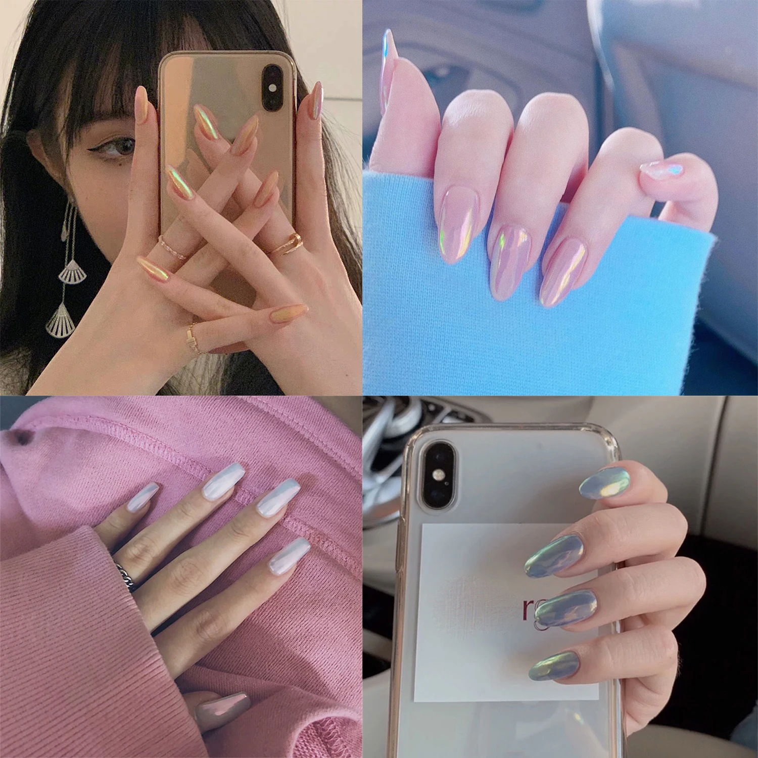 24 шт. новые голографические накладные ногти Aurora на шпильке акри...
