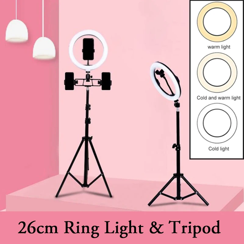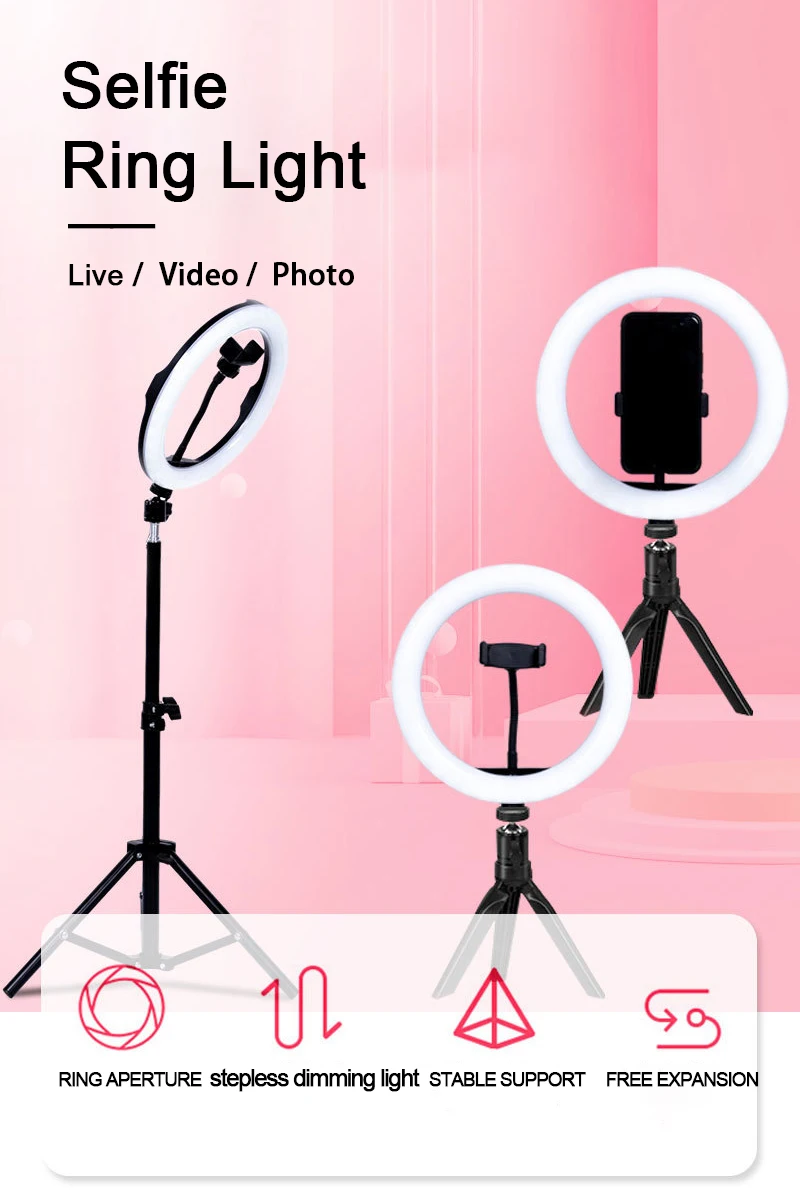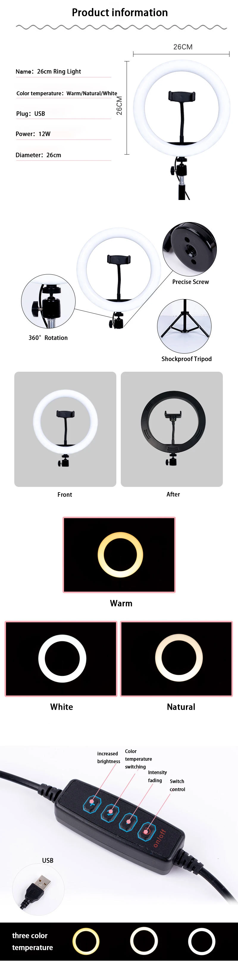 Светодиодный ная кольцевая лампа, светильник для фотосъемки, Селфи, приглушаемая лампа с USB для макияжа, Трипод для прямой трансляции видео Youtube, кольцевой светильник 26 см
