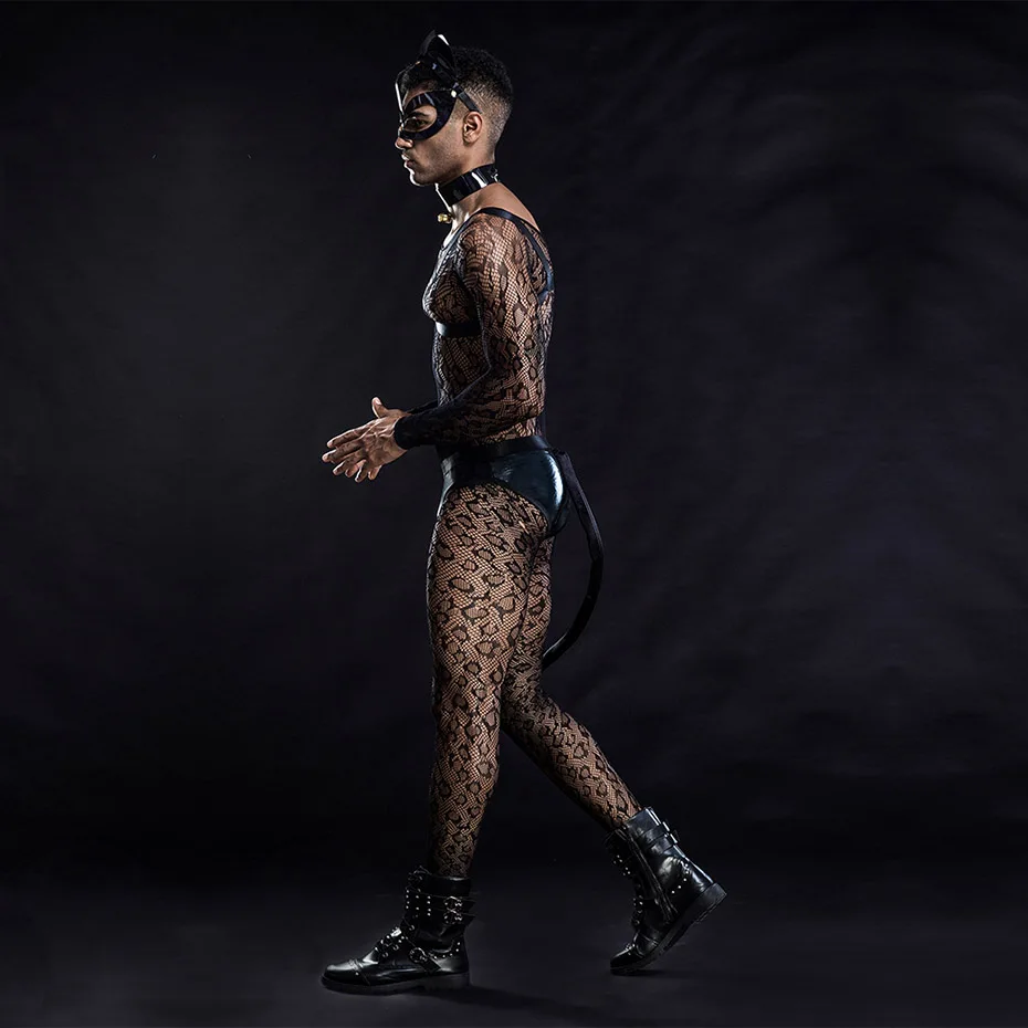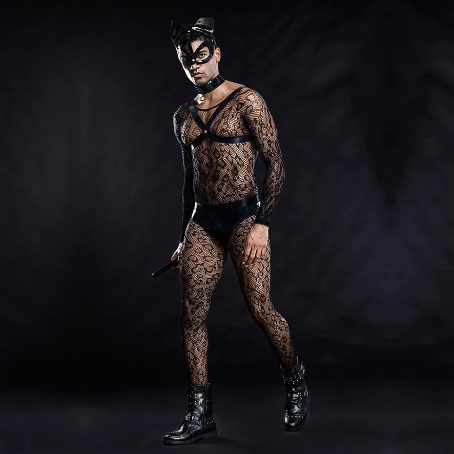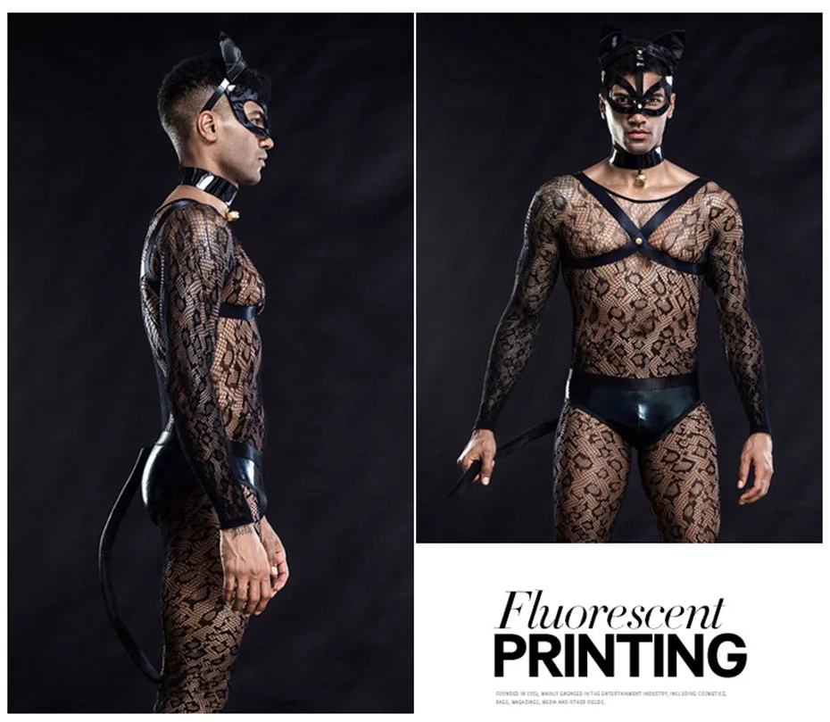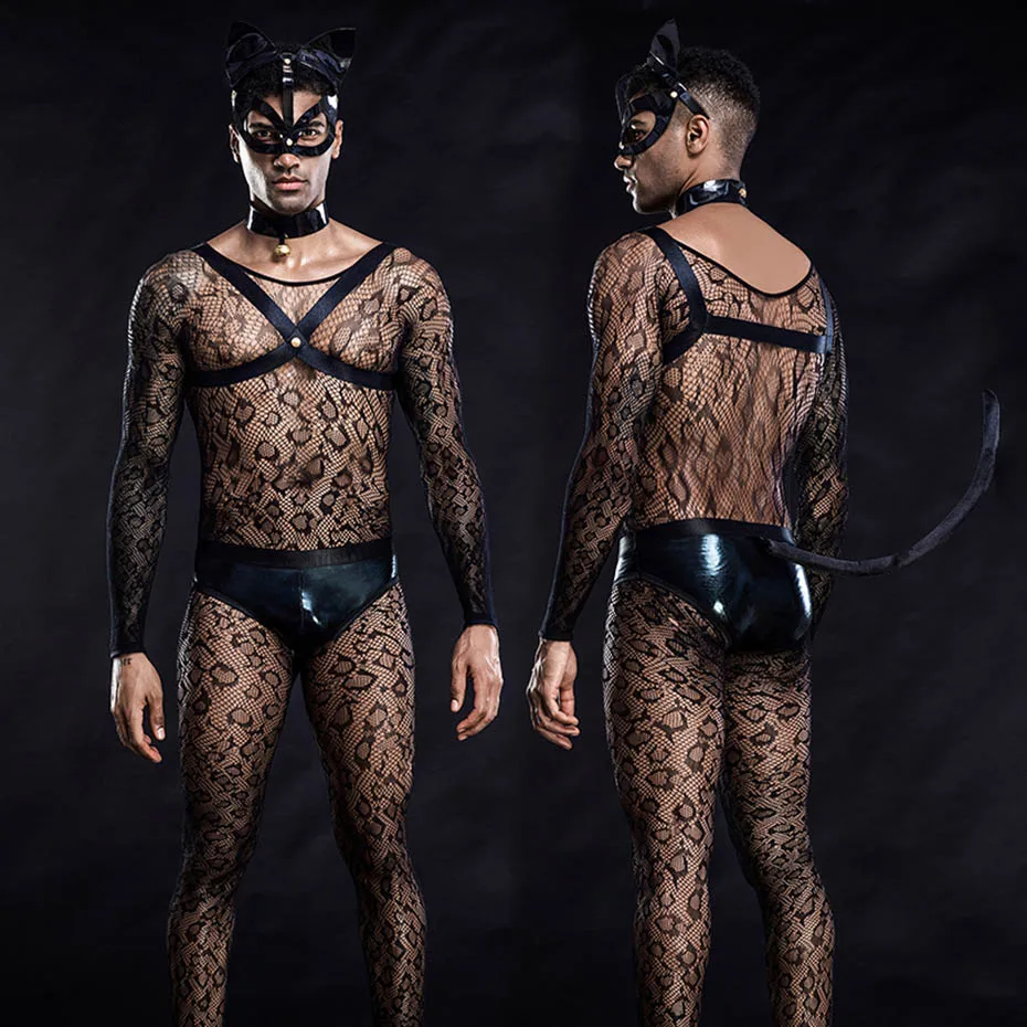 Мужской Прозрачный сетчатый костюм, костюм для косплея кошки, Экзот...