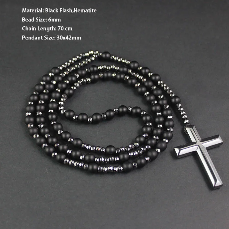 Подвеска в виде религиозного Креста, ожерелье для мужчин, гематит, бусы, ожерелье, черная вспышка, бусы, ожерелье для женщин, диаграмма, длинная цепочка, ожерелье, QJ-01