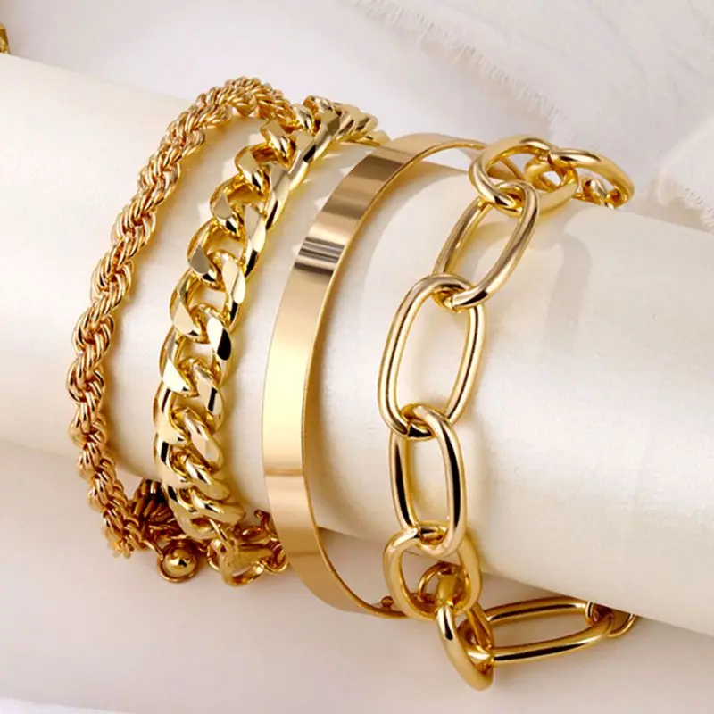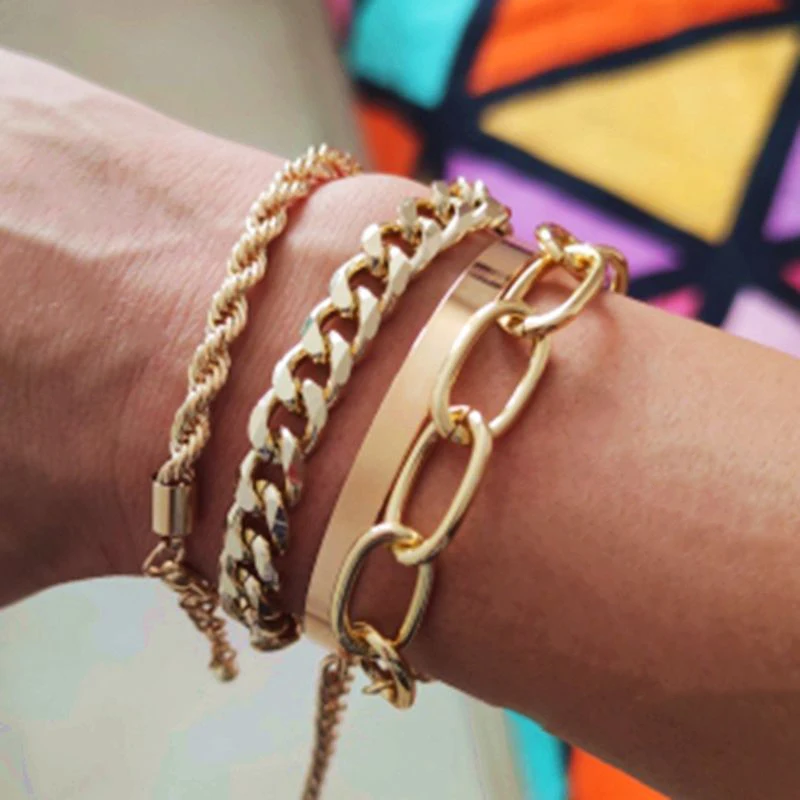 New DesignIFMIA 4Pcs/Set Punk Chunky Thick Miami Cuban Bracelets Bangles Set