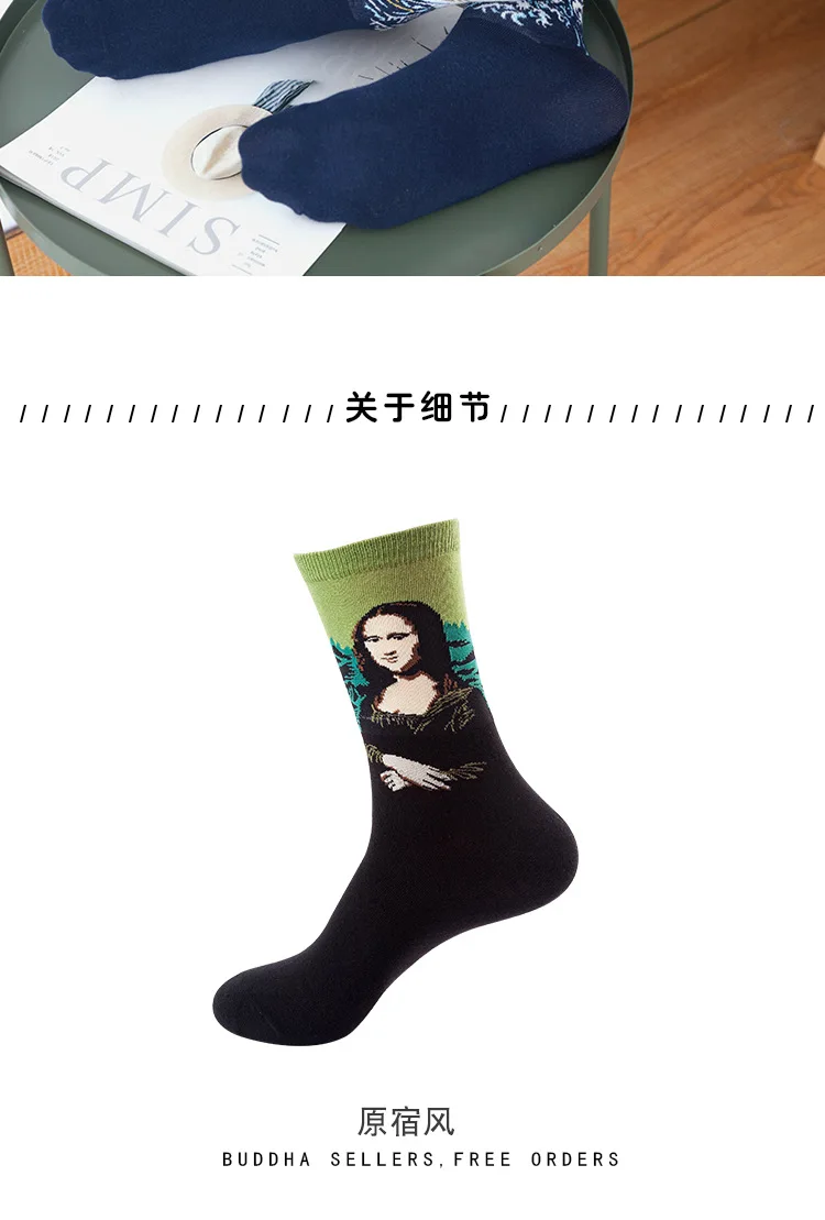 Женские носки в стиле ретро, осенне-зимние Смешные носки с изображением Ван Гога, серия масляной живописи