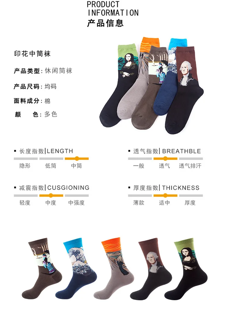 Носки мужские с рисунком масляной живописи, мужские носки, модные Х...