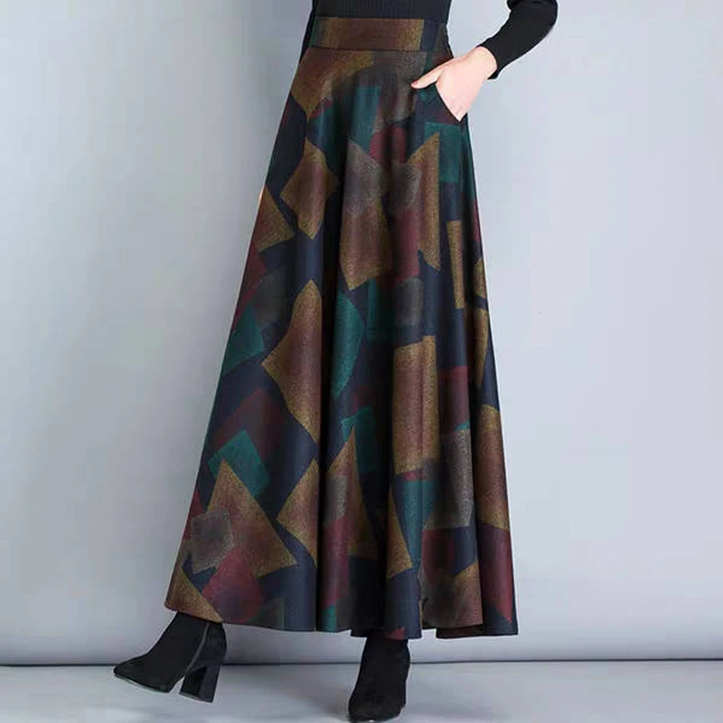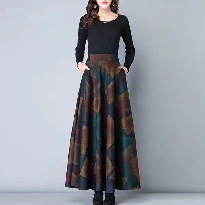 Зимняя шерстяная юбка-макси, Женская винтажная юбка трапециевидной ...