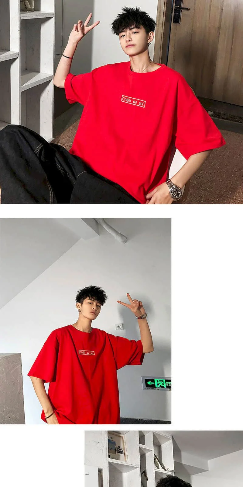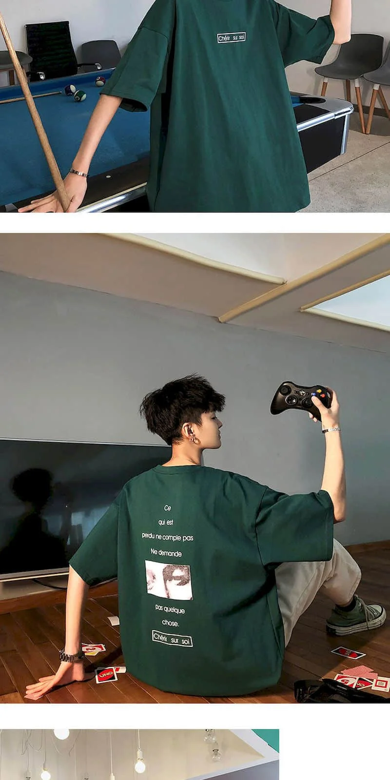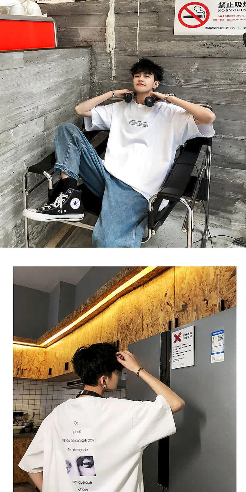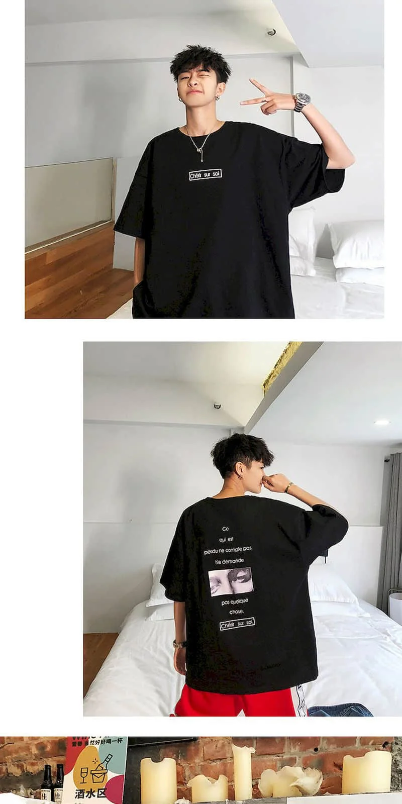 Футболка мужская оверсайз с принтом в японском стиле, модная свобод...