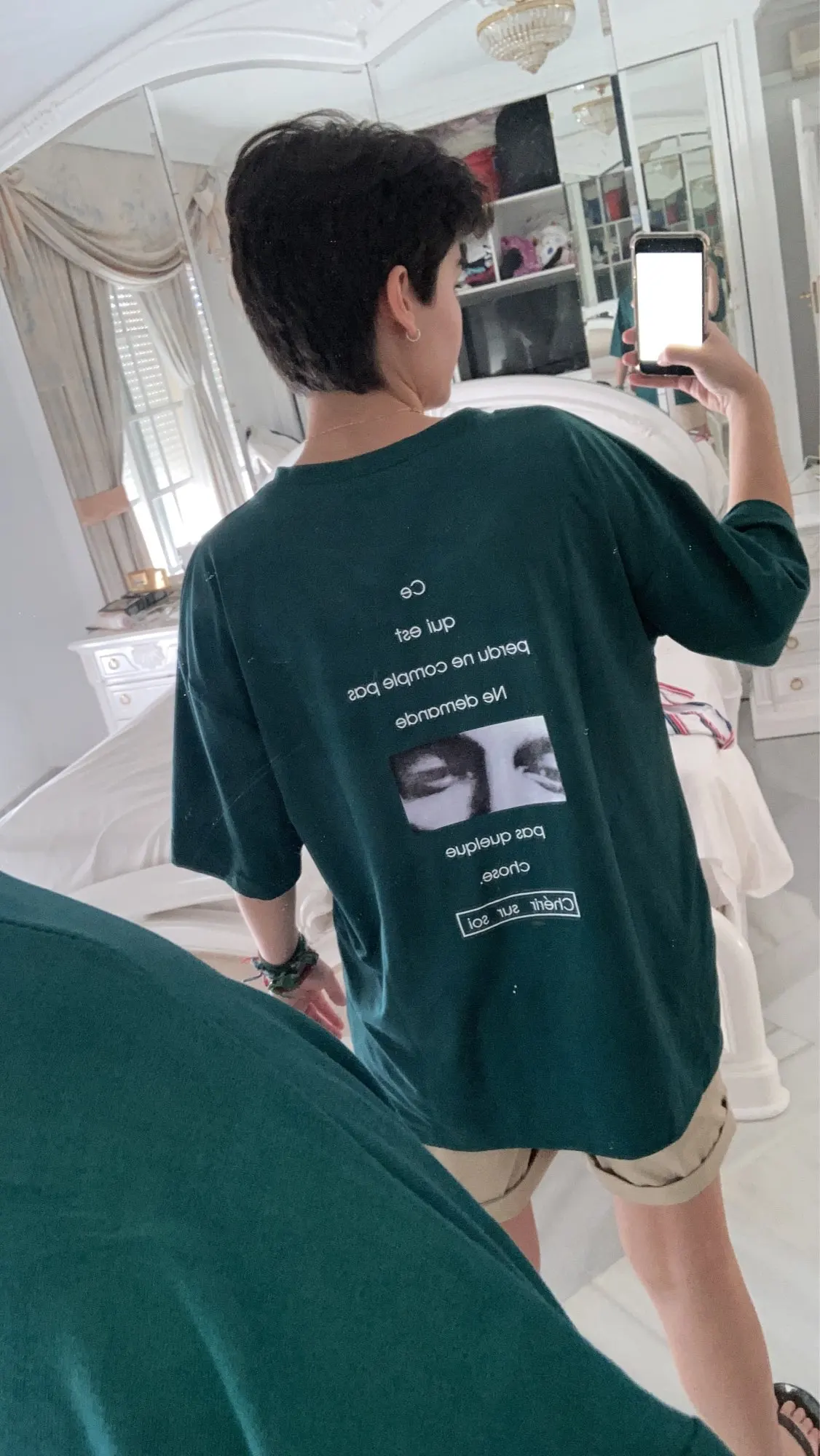 Футболка женская с коротким рукавом, свободная темная модная одежда...