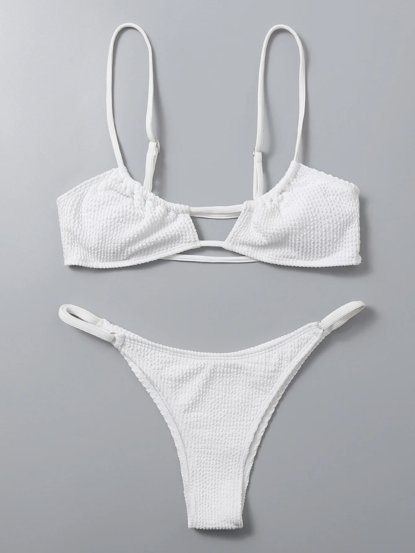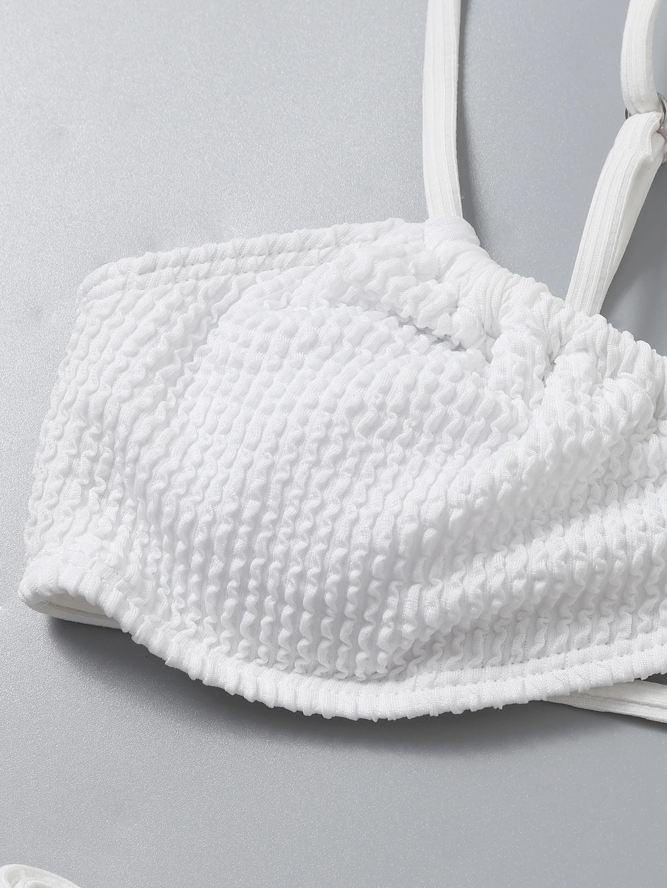 Сексуальное Плиссированное бикини 2021, Женский однотонный белый купальник с эффектом пуш-ап, летний пляжный купальник стринги, купальник, бикини