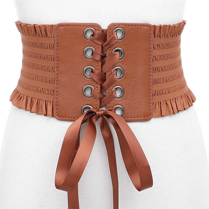 Женский эластичный ремень с кисточками, широкий корсетный пояс