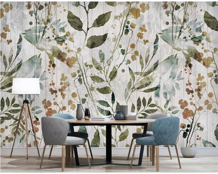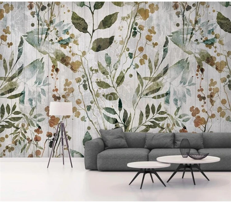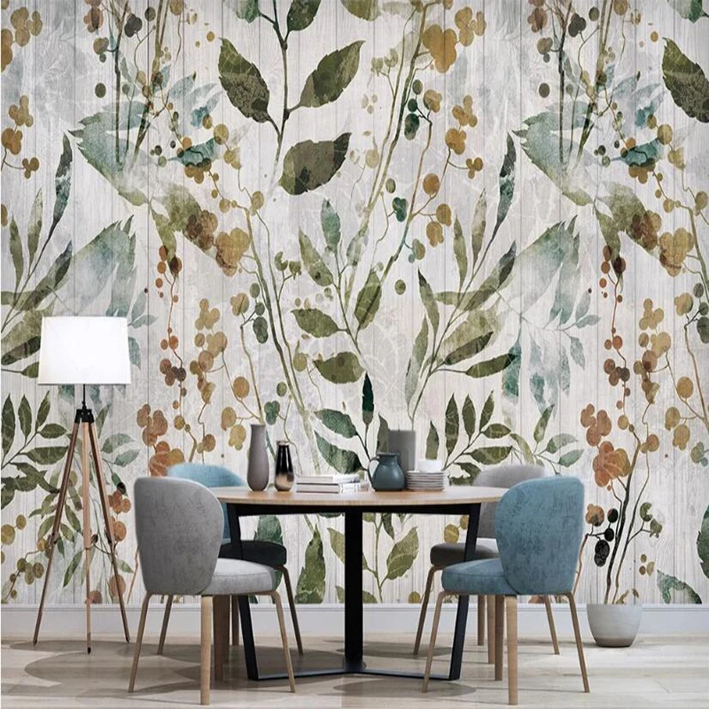 На заказ любой размер Настенные обои современный скандинавский стиль 3D листья деревянная доска винтажный фон настенный Декор Гостиная ТВ обои