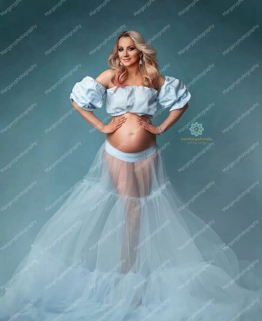 Очаровательные длинные фатиновые платья для беременных для фотосесс...