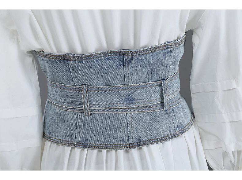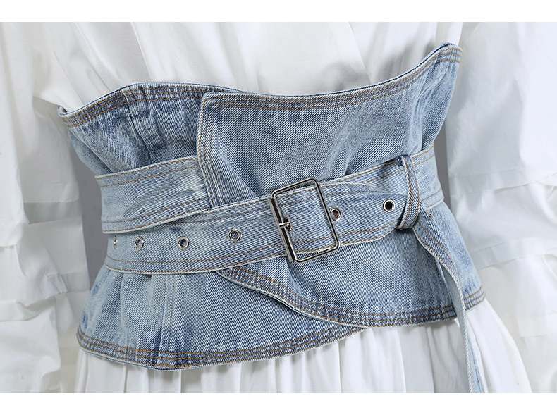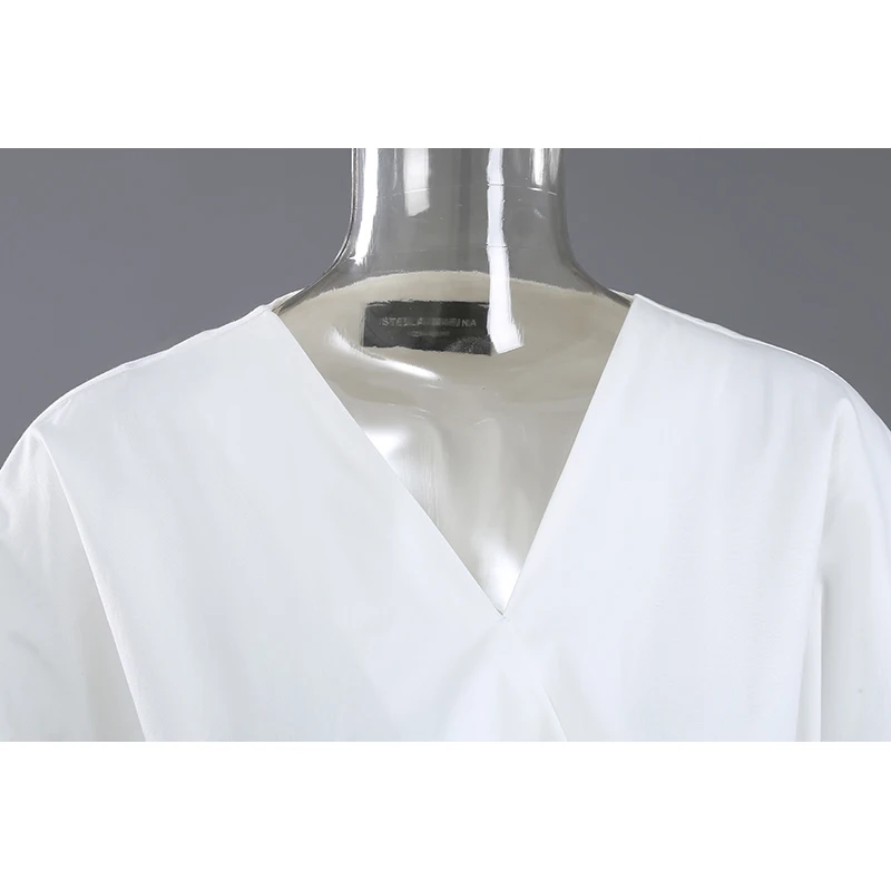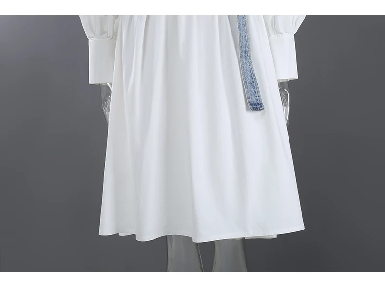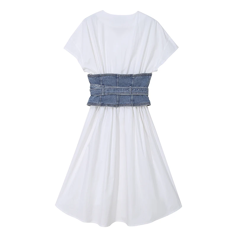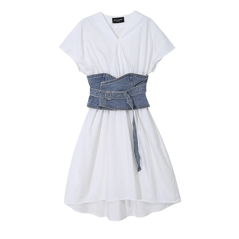 Женское джинсовое платье, белое ТРАПЕЦИЕВИДНОЕ ПЛАТЬЕ С V-образным вырезом, модель элегантная булавка на лето, с поясом с коротким рукавом
