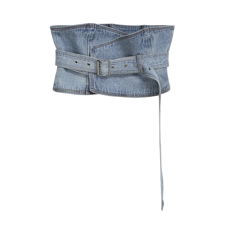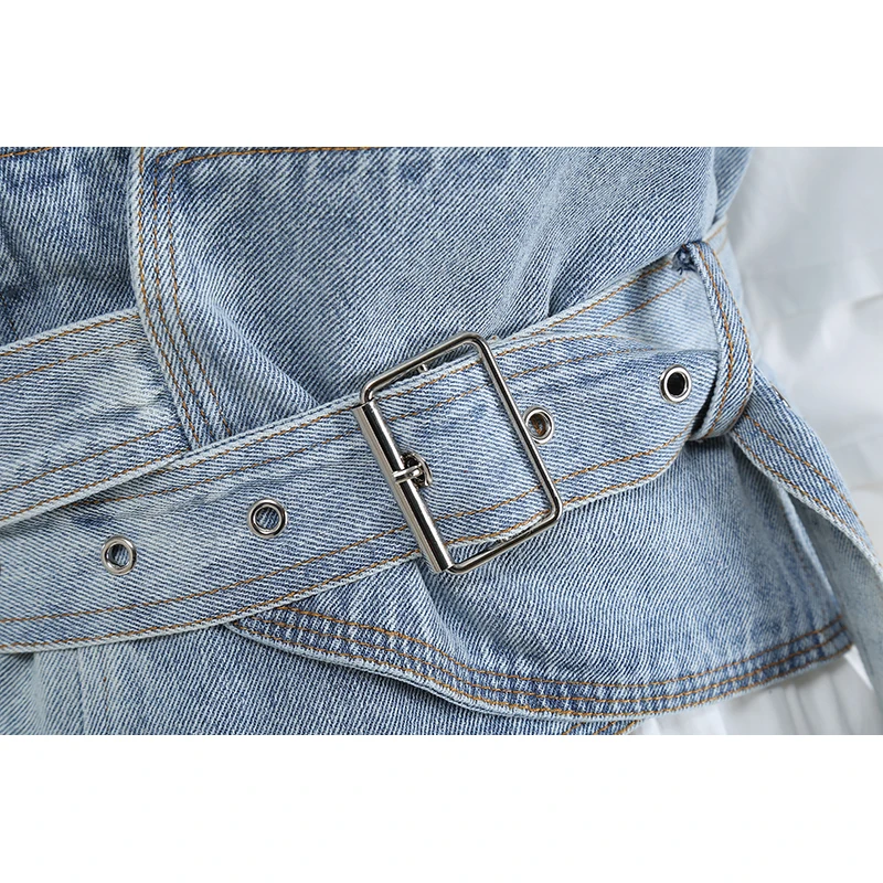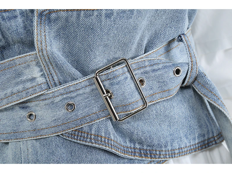 Женская джинсовая юбка составного кроя, Повседневная синяя трапецие...