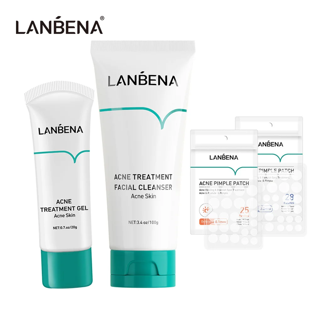 LANBENA новый набор для лечения акне уход за кожей лица удаление акне Ремонтный комплект усадка очищение пор моющее средство + гель от угрей + Патчи от акне