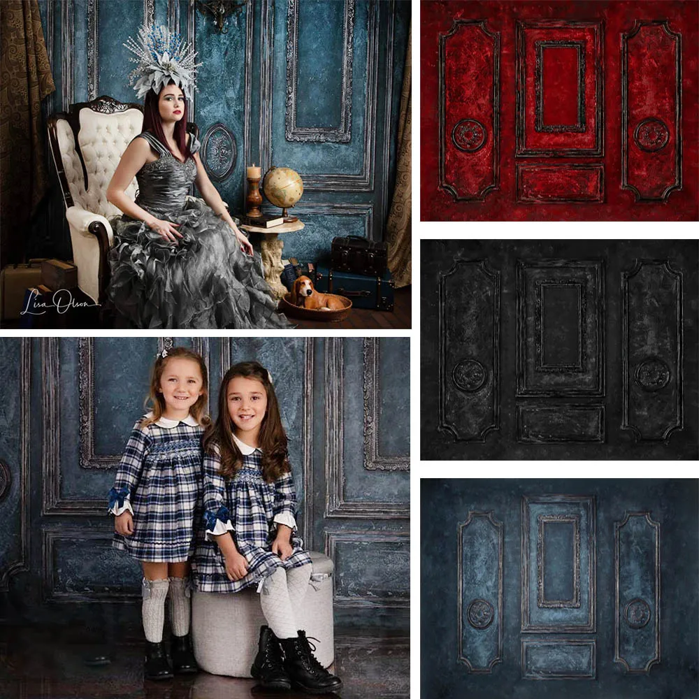 Красный черный темно синий ретро элегантная деревянная дверь фотография Фон Свадьба День рождения Дети Портрет фоны фотостудия