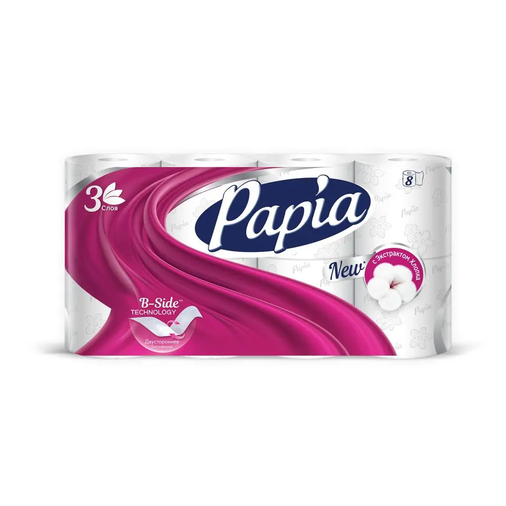 Туалетная бумага PAPIA Белая 3 слоя 8 рулонов