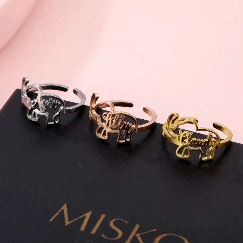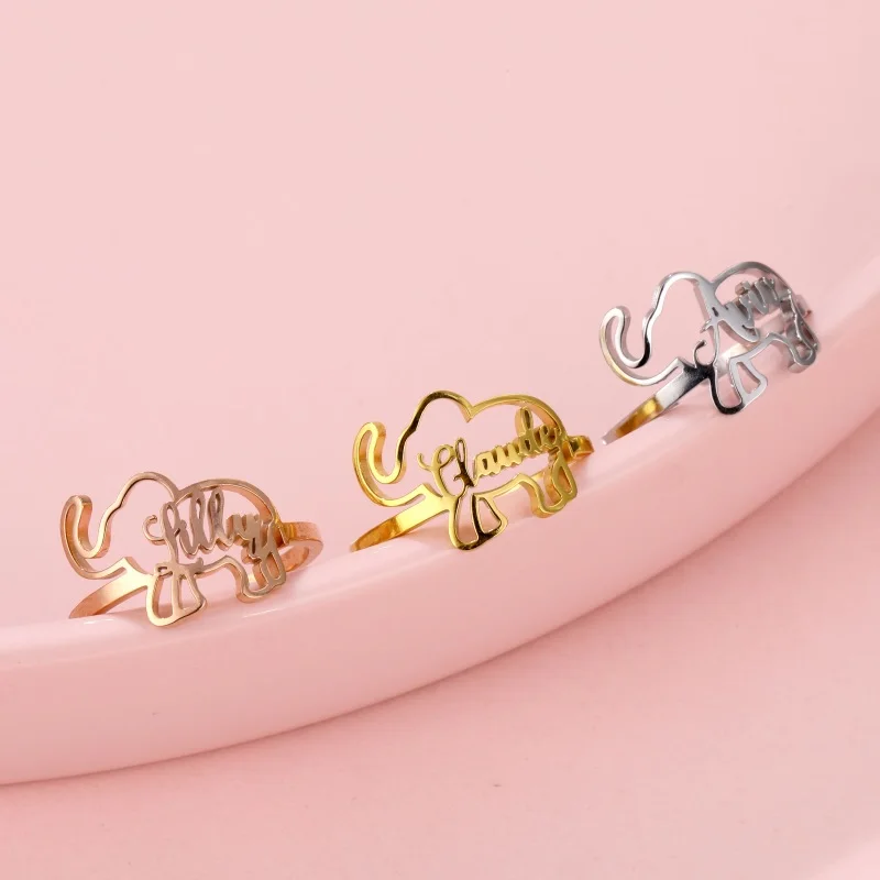 Нержавеющаясталь пользовательское имя кольцо кольца со слонами персонализированные пары названия подарок для мамы и дочки для ювелирных изделий