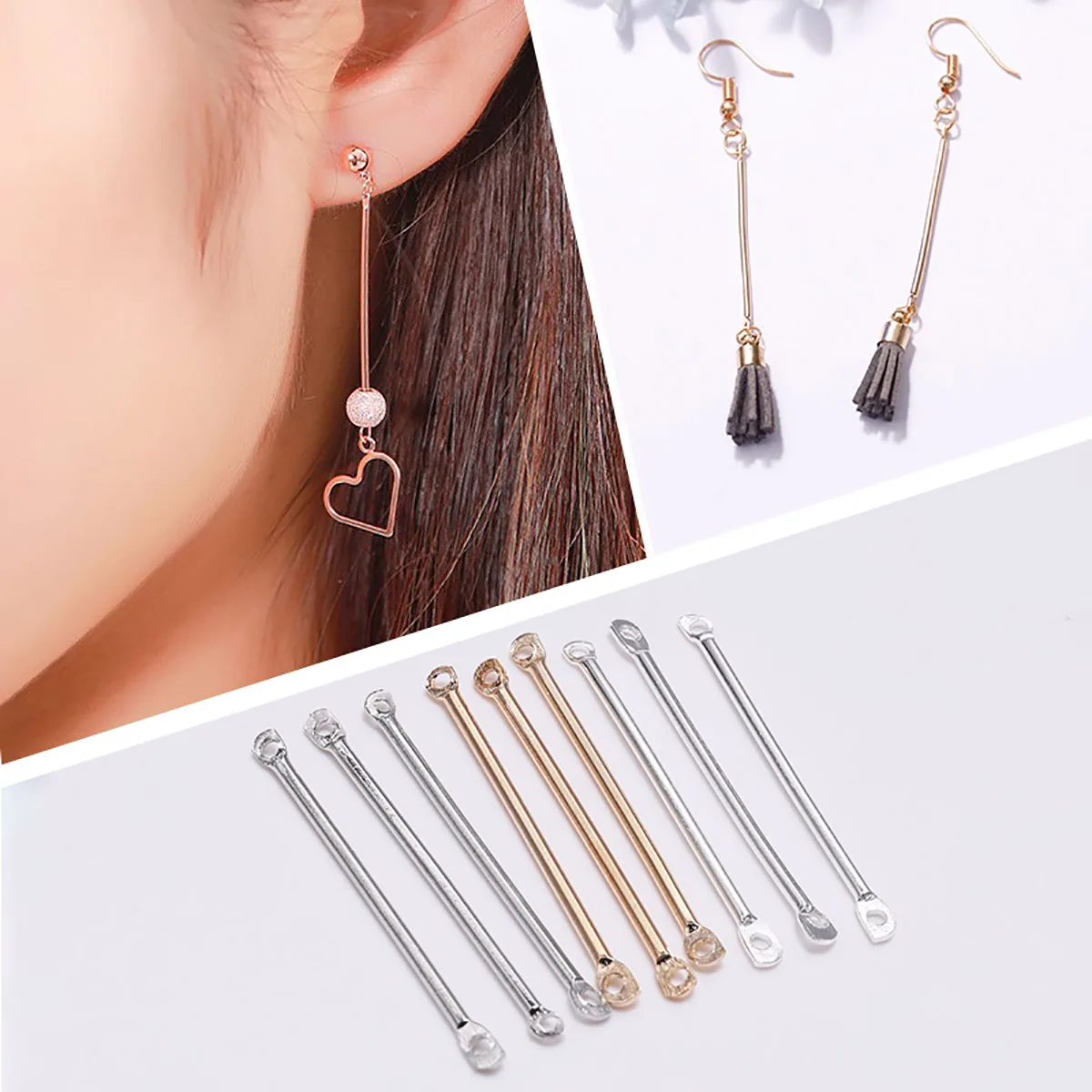 Соединительные штифты для сережек, золотистые двойные цилиндрические штифты для бижутерии, принадлежности для поделок, 50 шт., 15, 20, 25, 35, 40 мм