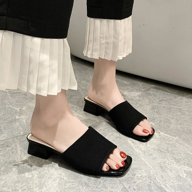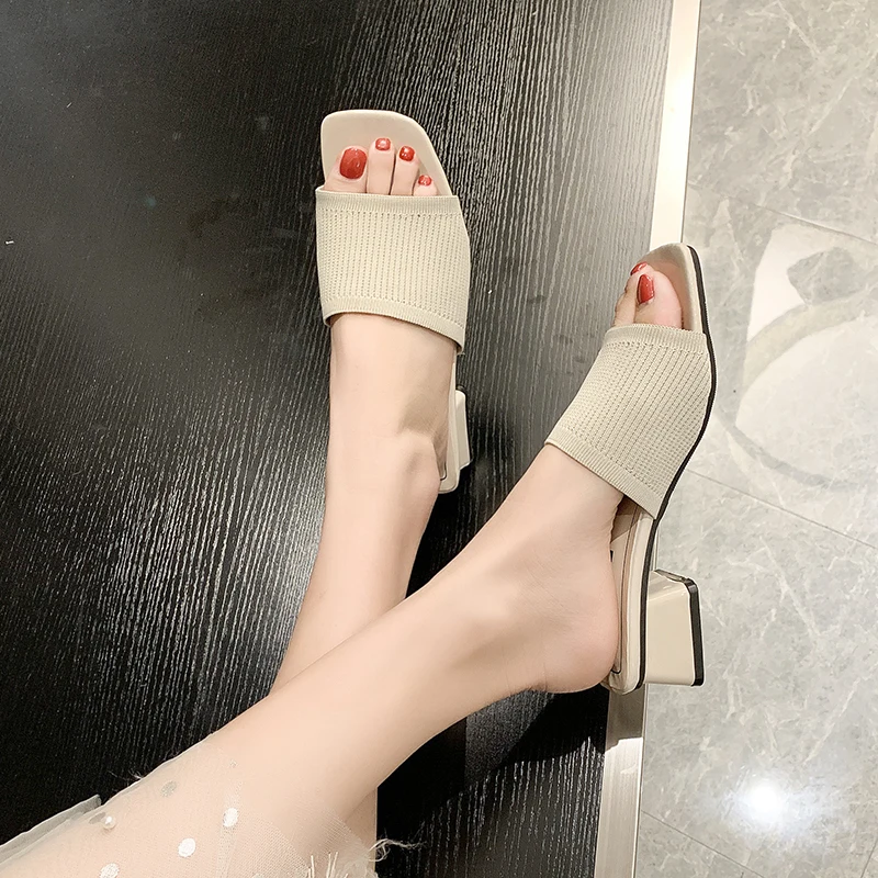 Сланцы женские на среднем каблуке, пляжные шлепанцы, квадратный нос...