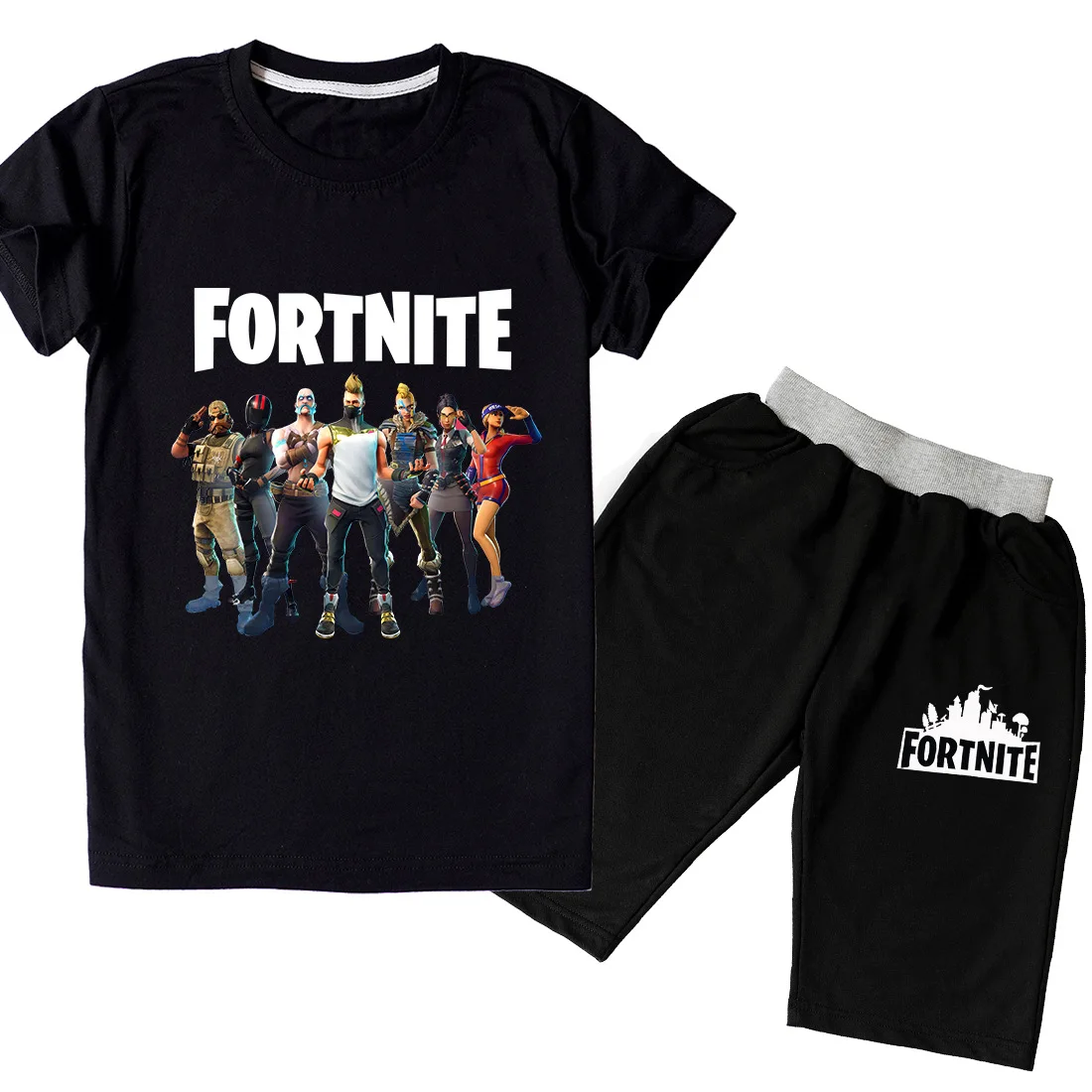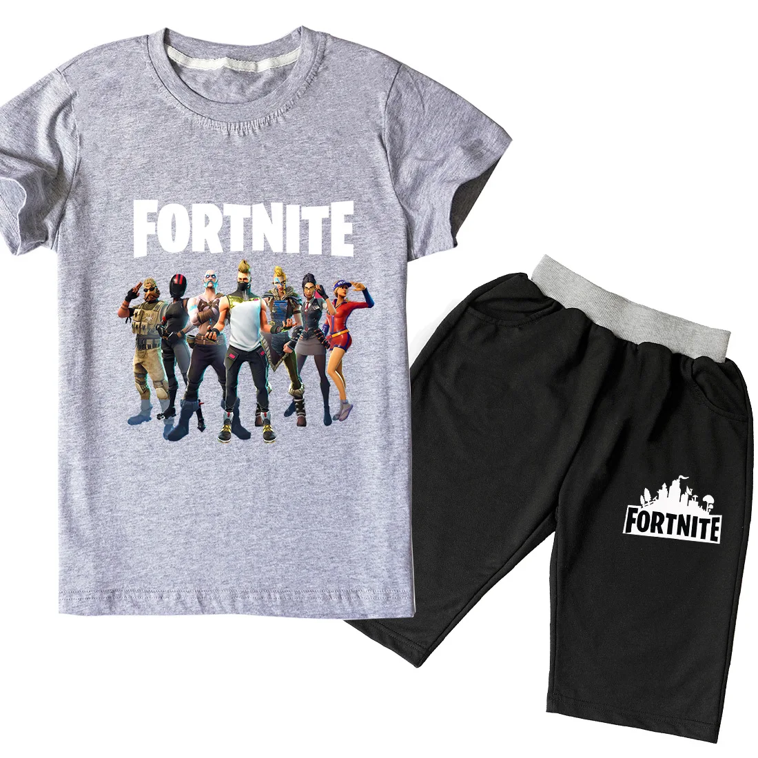 Детский летний костюм для мальчика, хлопковая футболка и шорты с изображением костюм Корона золотой узор, футболка с короткими рукавами + шорты, комплект из Fortnites комплекты модной детской одежды