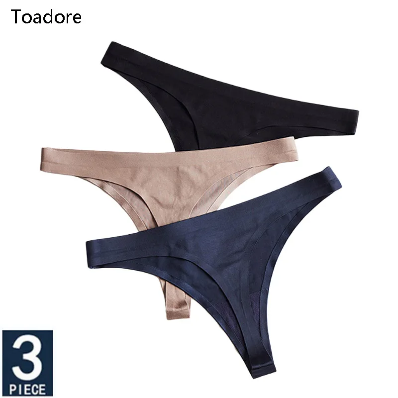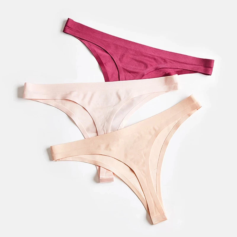 Стринги женские шелковые бесшовные, 3 шт.компл., XXL