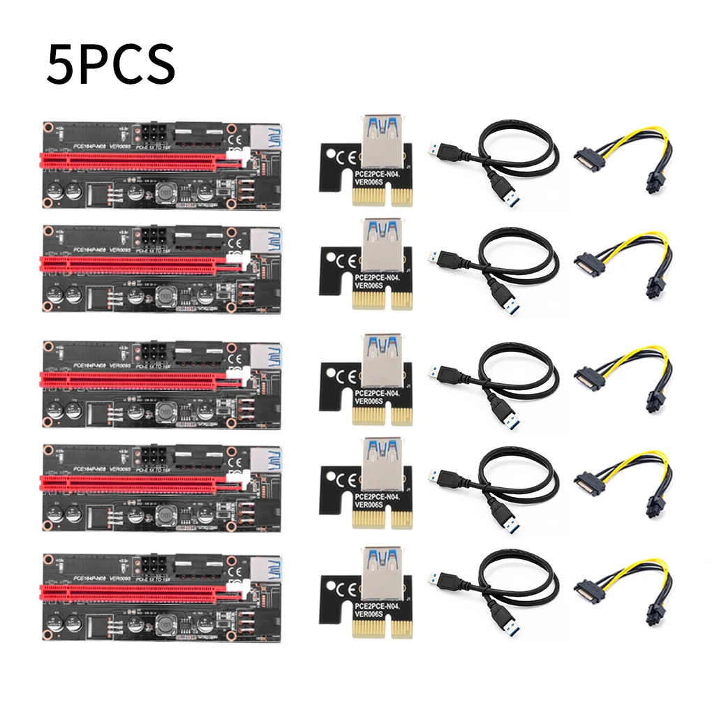 6510 шт., Райзер VER009 USB 3,0 Pci-E, Райзер Ver009S Express 1X 4X 8X 16X, Райзер-адаптер, карта Sata, 15 контактов на 6 контактов, кабель питания