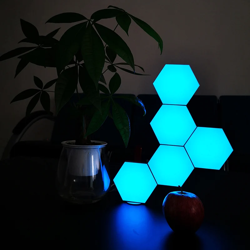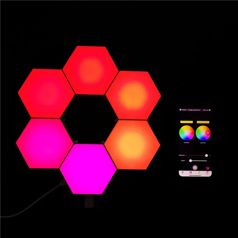 Приложение управления светодиодный Светодиодный шестиугольный свет Светодиодный светильник DIY, в том числе 6 панелей-светильник; Удовольствие от DIY: до 12 панелей могут быть соединены вместе, чтобы создать свои собственные формы, показывает великолепные эффекты и создает романтическую атмосферу. 16 миллионов цветов, выберите или Настройте цвета на мобильном приложении; 30 режимов изменения цвета, регулировка яркости, регулировка скорости изменения цвета, танцы на красном, зеленом и синем цветах с мобильной музыкой, танцуйте с выбранным цветом при записи музыки или голоса. Подключение по Bluetooth. Легко использовать и наслаждаться. Используйте usb-разъем и небольшие треугольные соединительные части, чтобы комбинировать светильник s и спроектировать ваш светильник. Обеспечивает питание, жизнь и множество других сцен, радует и делает вашу жизнь яркой. Размеры каждой панели: 4,1x3,5x1,2 в (10,3x9x3 см). Наклейте в любом месте на стену или стекло рядом с гнездом с помощью прозрачного нано-Резинового Клея. Не требуется подставка, напрямую контролируется через приложение на смартфоне; Обеспечивает питание, жизнь и множество других сцен с различным опытом.