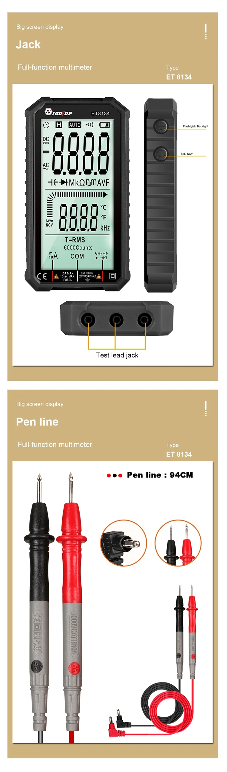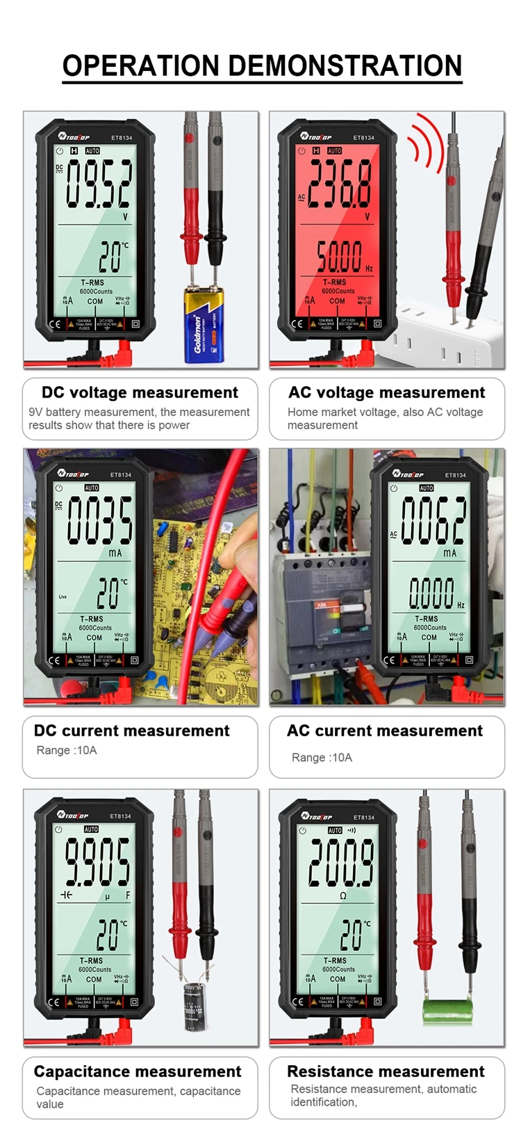 Цифровой мультиметр ET8134, Измеритель постоянного тока и емкости, ЖК-дисплей 4,7 дюйма