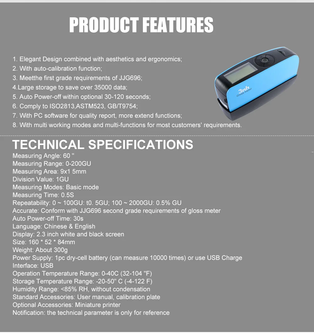 AccurateConform with JJG696 second grade requirements of gloss meter