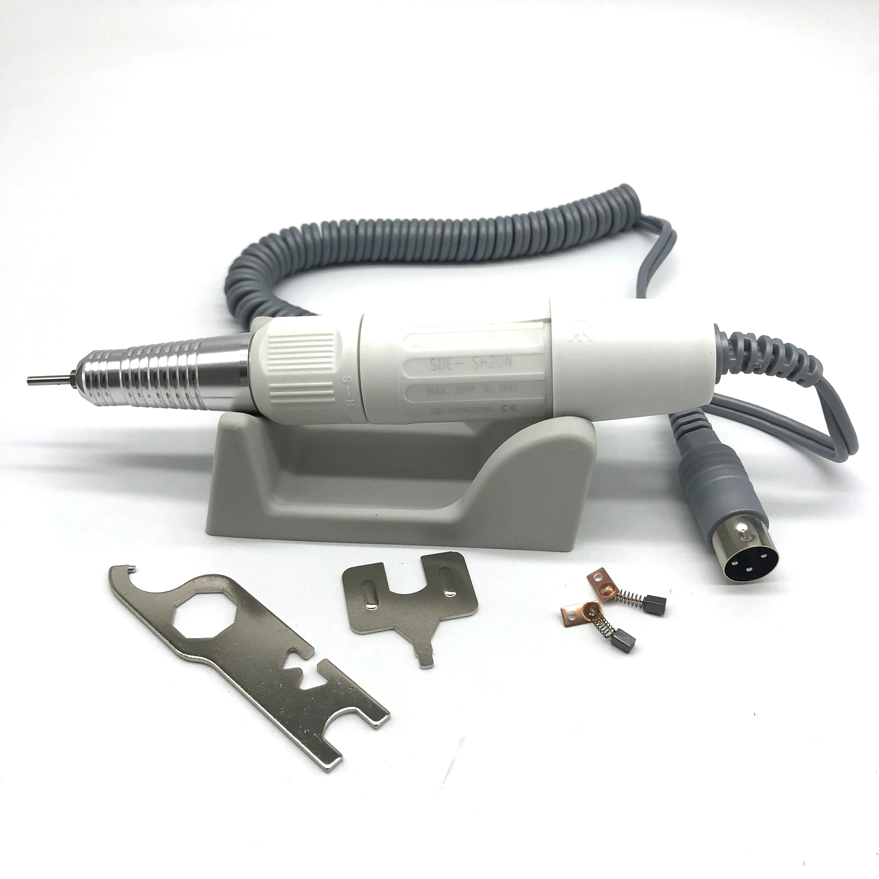 Руководство пользователя※ Перед эксплуатацией Обязательно прочитайте это руководство.※ Модель: Champion/ (H20N)Эскор1. Меры предосторожности-Установите блок на рабочем месте и не используйте его в грязном или очень жарком и влажном месте. (-20 ℃ ~ 40 C, 0 ~ 90% RH)-Пожалуйста, будьте осторожны, чтобы не уронить наконечник. Это повредит шариковый подшипник или ослабит долговечность двигателя.-Не допускайте попадания воды или других жидкостей на наконечник и блок управления.-После замены бура, пожалуйста, не забудьте также закрыть рукоятку патрона, не открывайте рукоятку патрона, пока наконечник работает.-Пока наконечник не работает, рекомендуется держать Бур в цанговом патроне после очистки-Пожалуйста, подключите шнур питания после проверки выключенного блока питания.Этот блок изготовлен для стоматологических лабораторных работ, ухода за ногтями и других сверлильных работ-Он используется только для специалистов, которые обучаются электрическому микромотору