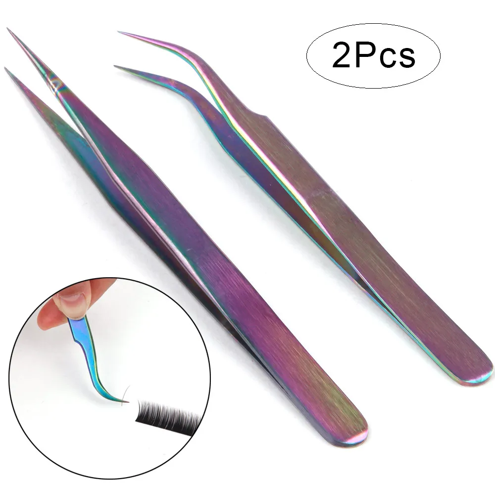 Пинцет для ресниц, из нержавеющей стали, профессиональное наращивание, инструмент для ресниц, 2 шт.