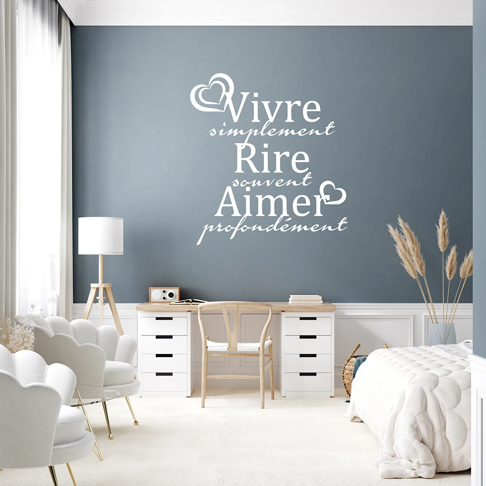 Мотивирующая французская цитата живая смешная любовь, наклейка на стену, слова, надпись, искусство, наклейки на стену, украшения для гостиной, плакаты