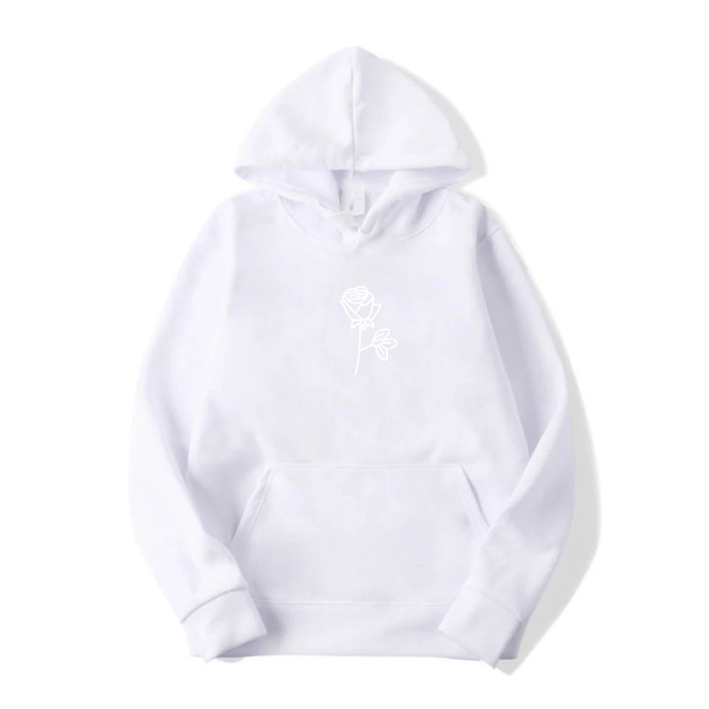 Толстовка с капюшоном, с белым цветочным принтом, весна-осень-зима, 2021