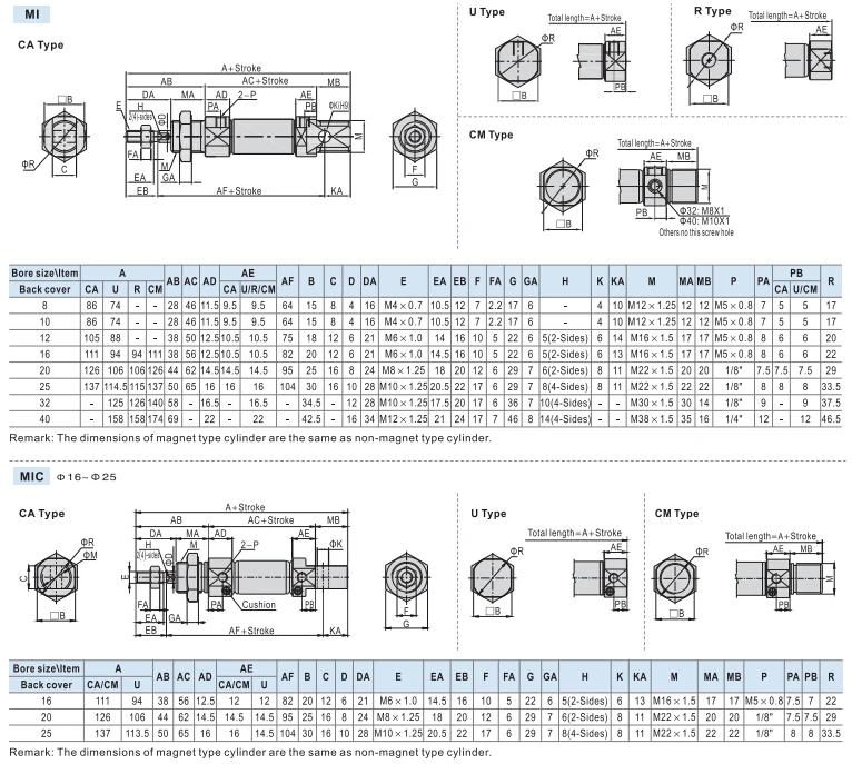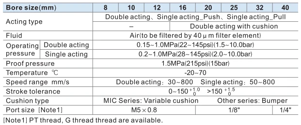 MICJ: мини-цилиндр (регулируемый ход с подушкой)
