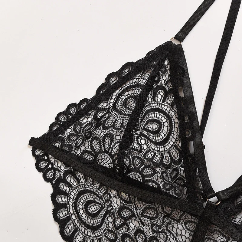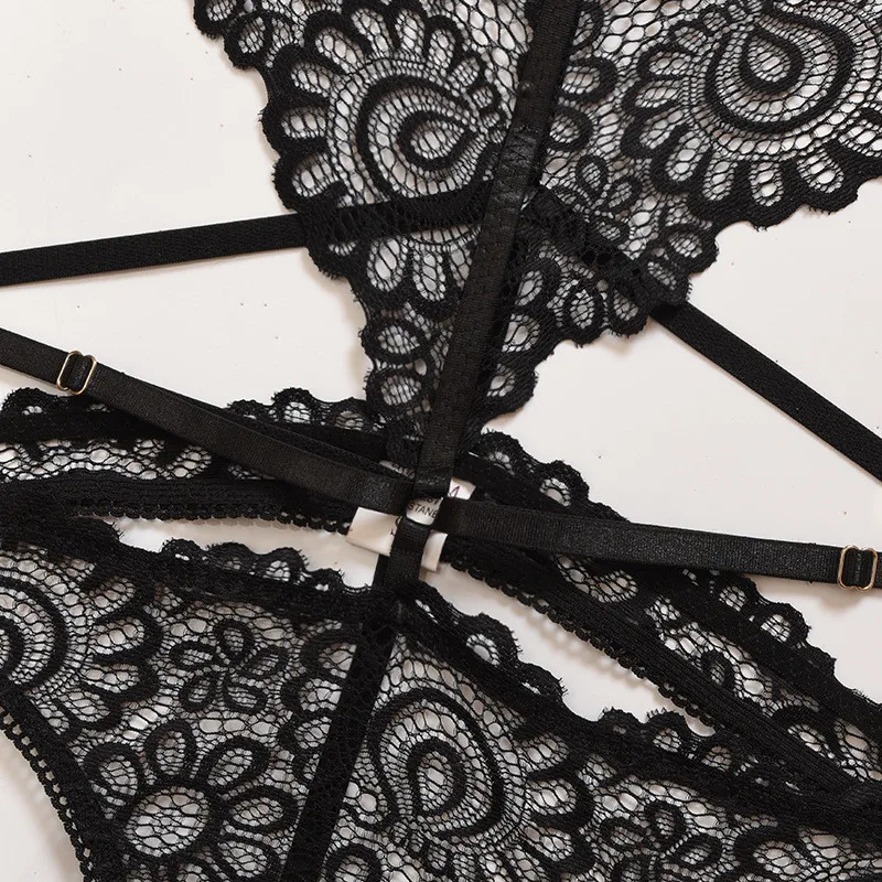 Комплект женского нижнего белья, соблазнительный кружевной ажурный бюстгальтер с принтом и трусики, цельный костюм для медового месяца, свадьбы, юбилея