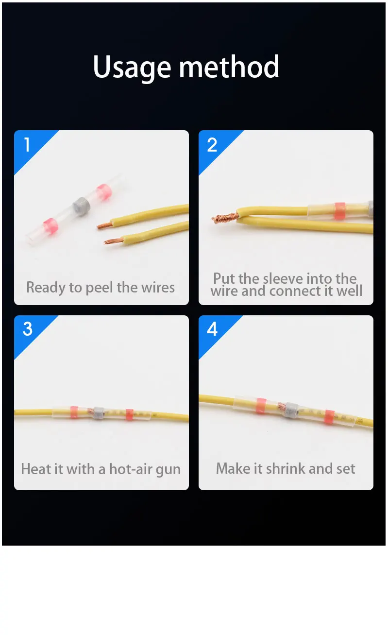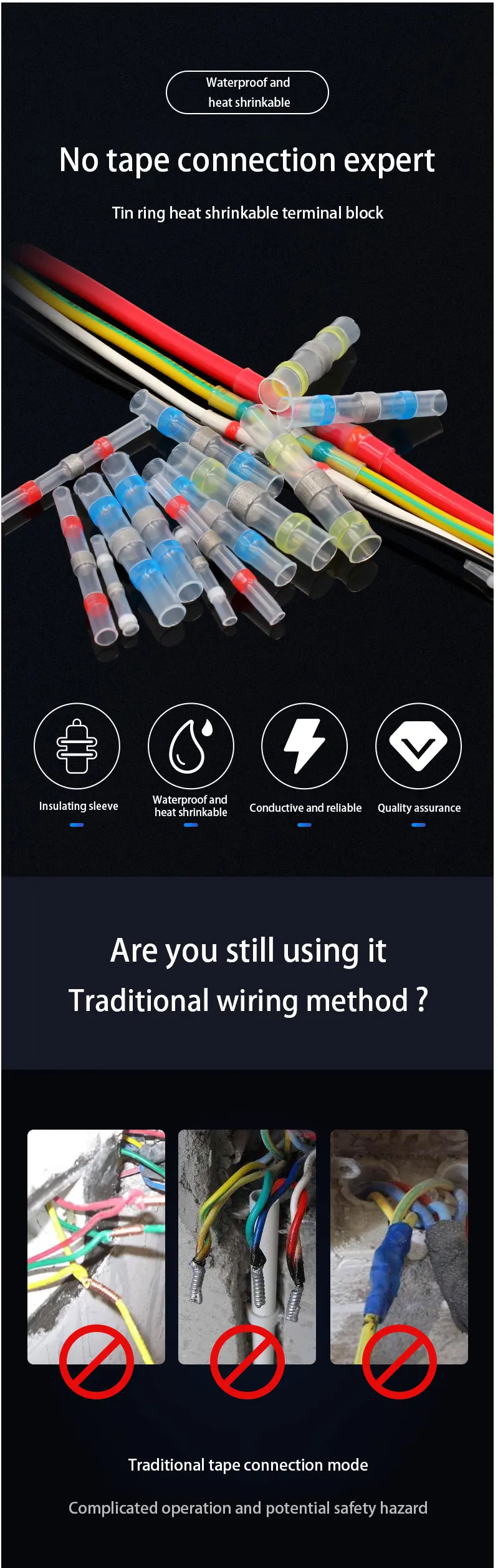 100300250 шт. термоусадочные стыковые обжимные клеммы, водонепроницаемое паяльное уплотнение, электрические стыковые соединители, набор клемм для соединения проводов и кабелей